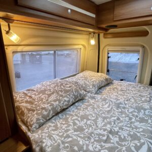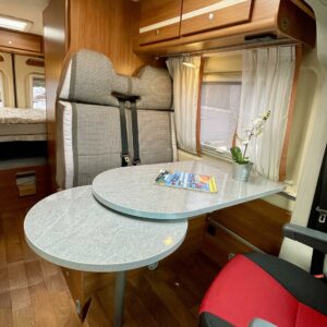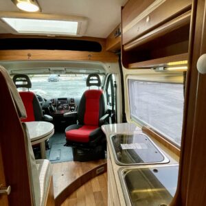 Towing hook, Vakionopeudensäädin: Perinteinen, Lohkolämmitin / moottorilämmitin, Two tyre sets, Trumatic- ilmapuhalluslämmitys, Electric steps, Electric heating cartridge, Poikittainen parivuode, Invertteri, Lisäpatjasarja, Airbag, ESC system, Trip computer, Cab air conditioning, Fridge, Cassette WC, Cassette blinds, Roof hatch, Hot water boiler, Stove, Power steering, Freezer compartment, Double bed, Pysäköintikamera, Radio, Shower, Electric windows, Power side mirrors, Asuinosan hyttysovi/verho, Kesärenkaat, Talvirenkaat(nasta)