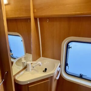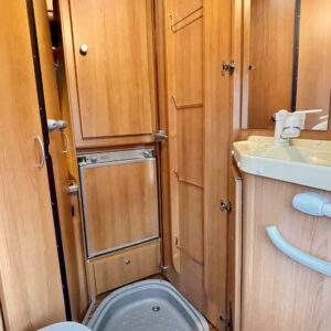 Trip computer, ABS brakes, Airbag, Cab air conditioning, Air conditioning man., Fridge, Two tyre sets, Cassette WC, Cassette blinds, Roof hatch, Bunk bed, Central locking with remote, Central heating, Ignition interlock, Stove, Hot water boiler, Sun shade, Power steering, Freezer compartment, Double bed, Parking sensor/camera, Sink, Electric windows, Power side mirrors, Electric steps, Trumatic, Turbo, TV antenna/satellite dish, Cruise control, Towing hook