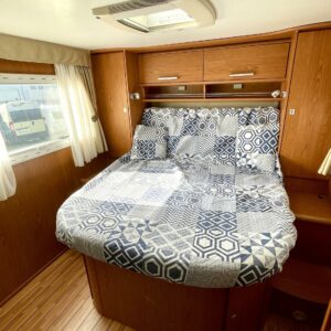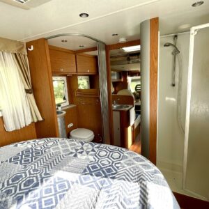 ABS brakes, Solar panel, Air conditioning man., Fridge, Two tyre sets, Cassette WC, Cassette blinds, Stove, Engine heater, Hot water boiler, Sun shade, Double bed, Parking sensor/camera, Fuel-operated additional heater, Bicycle rack, Stereo system, Shower, Electric windows, Electric heating cartridge, Power side mirrors, Trumatic, TV antenna/satellite dish, Cruise control, Airbags, Player, jenkkijääkaappi, kaasun ulosotto, Ilmastointi (ohjaamo), laskuvuode, Invertteri