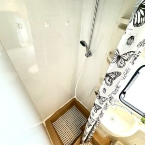 ABS brakes, Airbag, Cab air conditioning, Fridge, Two tyre sets, Cassette WC, Cassette blinds, Roof railing/ladder, Roof hatch, Central heating, Ignition interlock, Stove, Hot water boiler, Sun shade, Power steering, Freezer compartment, Double bed, Radio, Shower, Trumatic, Turbo, Towing hook