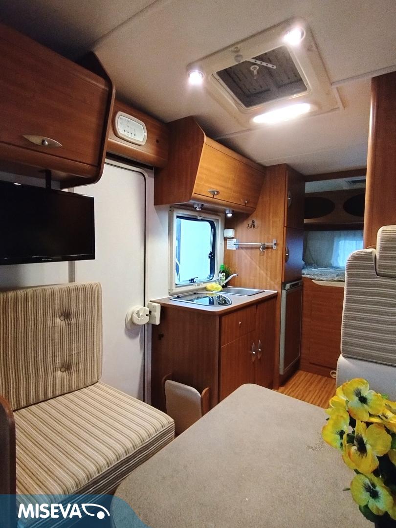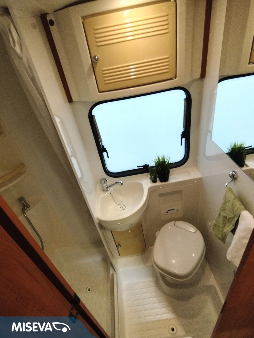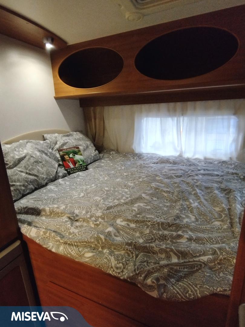 ABS brakes, Airbag, Cassette blinds, Cassette WC, Roof hatch, Ilmastointi: Automaattinen, Fridge, Stove, Hot water boiler, Sink, Electric windows, Trumatic, Electric steps, Power side mirrors, Bicycle rack, Radio, Shower, Double bed, Freezer compartment, Keskuslukitus: Kaukosäätöinen, Cab air conditioning, Power steering, TV-antenni tai lautasantenni, Turbo, Vakionopeudensäädin