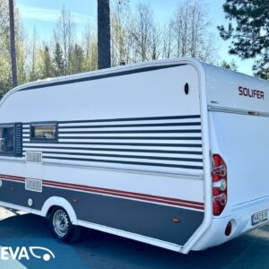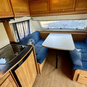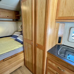 Solar panel, Cassette blinds, Cassette WC, Fridge, Roof hatch, Floor heating, Stove, Hot water boiler, Fluid circulation heating, Freezer compartment, Double bed, Sink, Support legs, Electric heating cartridge, Shower, Radio