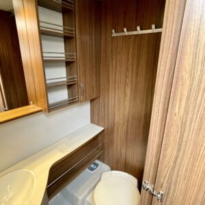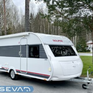Alde, Separate beds, Fridge, Cassette WC, Cassette blinds, Stove, Hot water boiler, Sun shade, Freezer compartment, Sink, Radio, Shower, Electric heating cartridge, Support legs, Lattialämmitys (sähkö), liesituuletin, Bluetooth