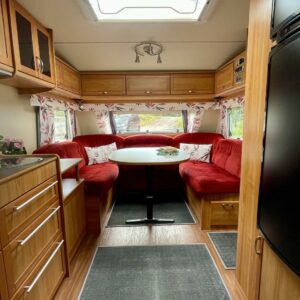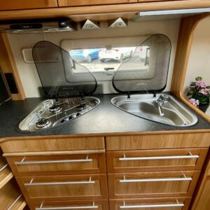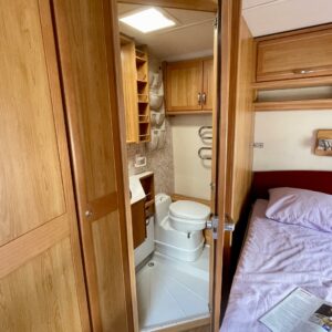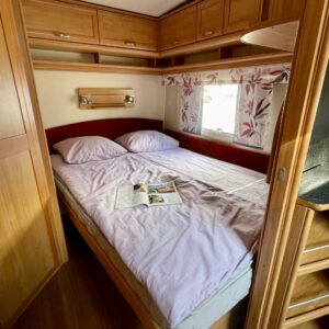 Alde, CD-soitin, Special wheels, Cassette blinds, Cassette WC, Fridge, Roof hatch, Floor heating, Stove, Hot water boiler, Sun shade, Sink, Freezer compartment, Fluid circulation heating, Bicycle rack, Shower, Electric heating cartridge, Support legs
