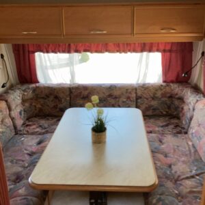 Fridge, Cassette WC, Stove, Hot water boiler, Fluid circulation heating, Radio, Electric heating cartridge, TV-antenni tai lautasantenni, Support legs, Primus, Lattialämmitys (nestekierto), kwh-mittari, Floor heating, Roof hatch, Double bed, Sink