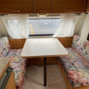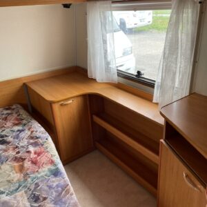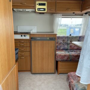 Alde, Fridge, Cassette WC, Stove, Hot water boiler, Freezer compartment, Double bed, Radio, Electric heating cartridge, TV-antenni tai lautasantenni, Support legs, Lattialämmitys (nestekierto)