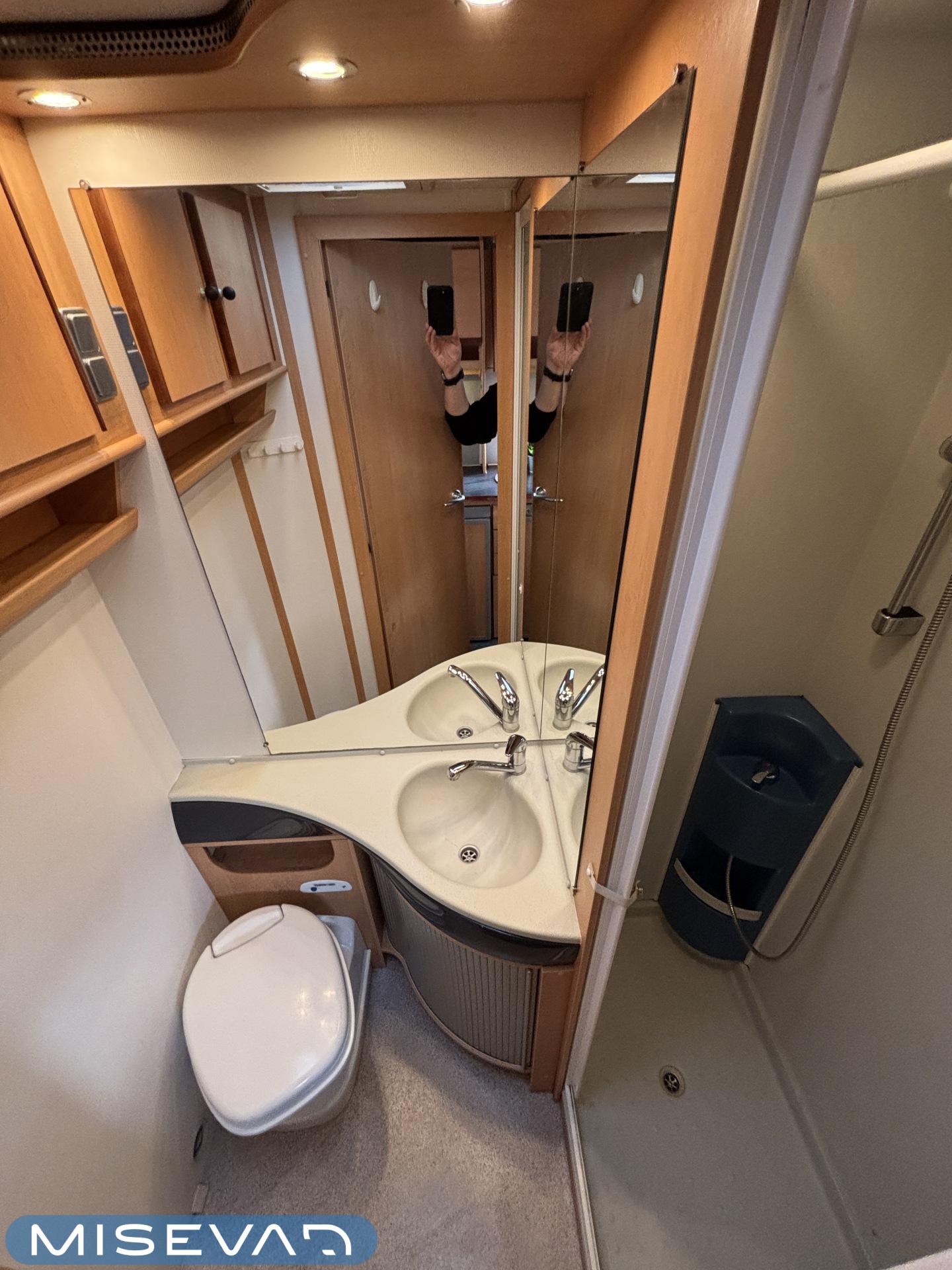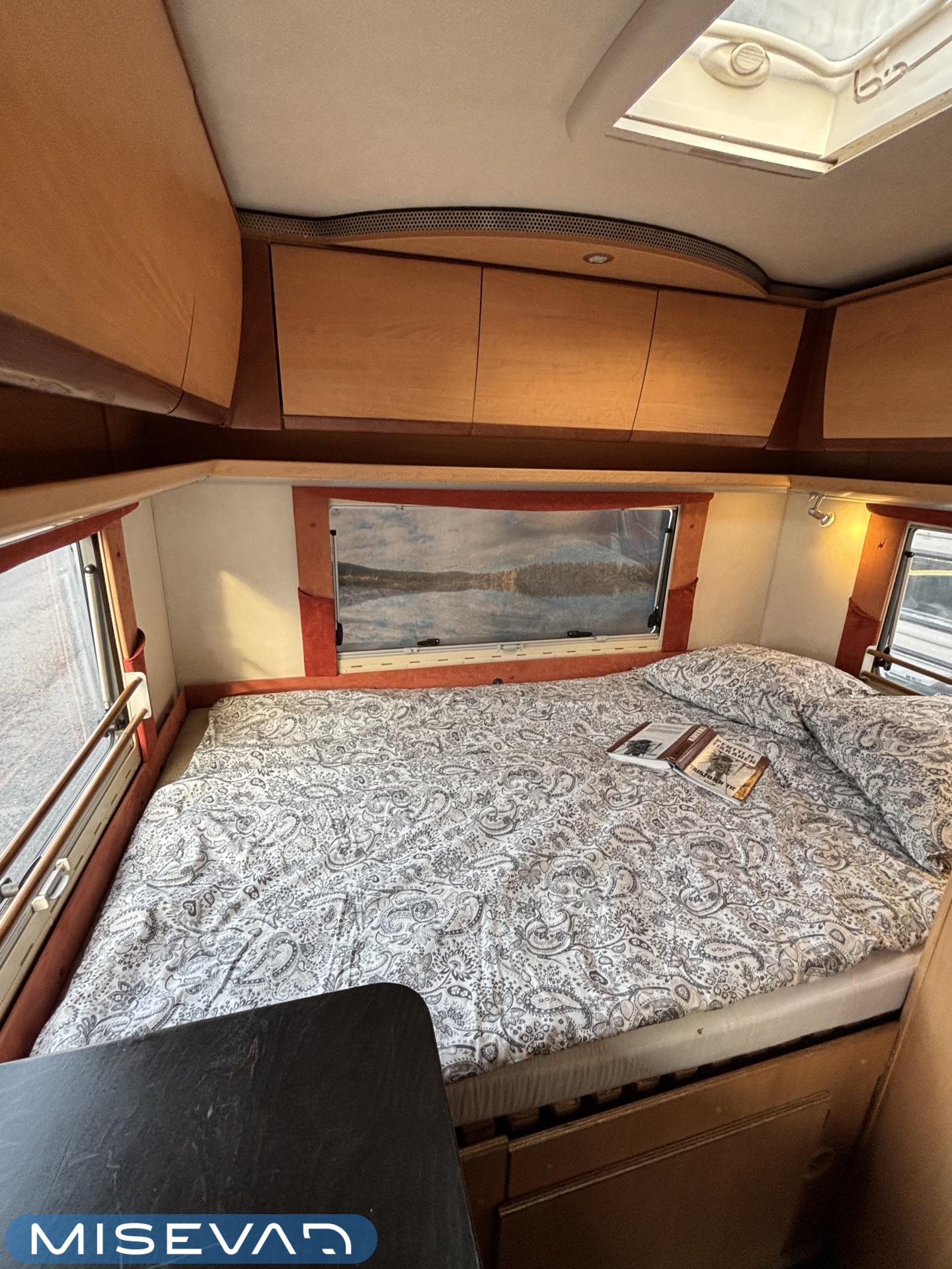 Trip computer, Bluetooth, Special wheels, Cab air conditioning, Ilmastointi: Automaattinen, Fridge, Cassette WC, Cassette blinds, Roof hatch, Bunk bed, Keskuslukitus: Kaukosäätöinen, Central heating, Hot water boiler, Sun shade, Freezer compartment, Double bed, Radio, Shower, Electric windows, Electric heating cartridge, Power side mirrors, Vakionopeudensäädin
