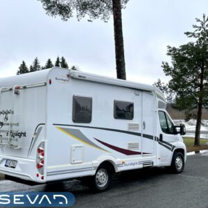 Two tyre sets, Trumatic- ilmapuhalluslämmitys, Electric heating cartridge, Pitkittäinen parivuode, Sink, Freezer compartment, Sun shade, Hot water boiler, Stove, Lattialämmitys- sähköinen, Roof hatch, Cassette blinds, Kasetti- WC, Fridge, Passenger area carpets, Pysäköintikamera, Power steering, Radio, CD-soitin, Power side mirrors, Electric windows, Shower, Vakionopeudensäädin, Bicycle rack, Cab air conditioning, Kesärenkaat, Talvirenkaat(nasta), Asuinosan hyttysovi/verho