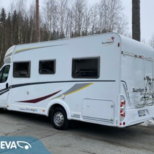 ABS brakes, Airbag, Trip computer, Cab air conditioning, Fridge, Two tyre sets, Cassette WC, Cassette blinds, Roof hatch, Central heating, Passenger area carpets, Stove, Hot water boiler, Sun shade, Power steering, Freezer compartment, Double bed, Sink, Bicycle rack, Radio, Shower, Electric windows, Power side mirrors, Electric steps, Trumatic, Turbo, Vakionopeudensäädin, Lattialämmitys (sähkö)