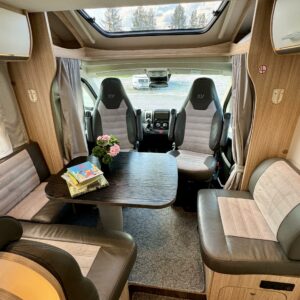 ABS brakes, Airbag, Trip computer, Solar panel, Special wheels, Fridge, Ilmastointi: Manuaalinen, Cab air conditioning, Cassette WC, Cassette blinds, Roof hatch, Keskuslukitus: Kaukosäätöinen, Central heating, Ignition interlock, Floor heating, Passenger area carpets, Stove, Traction control, Hot water boiler, Sink, Freezer compartment, Power steering, Double bed, Navigator, Sun shade, Pysäköintikamera, Bicycle rack, Radio, Shower, Electric windows, Electric heating cartridge, Vakionopeudensäädin, Turbo, Trumatic, TV-antenni tai lautasantenni, Electric steps, Power side mirrors