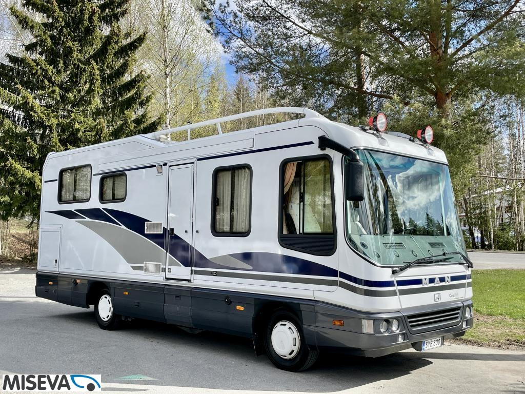 ABS brakes, Alde, Insulated grey water tank, Air conditioning aut., Fridge, Two tyre sets, Kattokaiteet/tikaat, Roof hatch, Central heating, Passenger area carpets, Stove, Hot water boiler, Sun shade, Microwave oven, Fluid circulation heating, Power steering, Freezer compartment, Double bed, Sink, Stereo system, Shower, Electric heating cartridge, Double bottom, Turbo, Towing hook