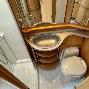 ABS brakes, Airbag, Alde, Fridge, Cab air conditioning, Ilmastointi: Automaattinen, Cassette WC, Cassette blinds, Roof hatch, Keskuslukitus: Kaukosäätöinen, Central heating, Ignition interlock, Floor heating, Stove, Hot water boiler, Sink, Power steering, Freezer compartment, Fluid circulation heating, Sun shade, Fuel-operated additional heater, Bicycle rack, Shower, Radio, Electric heating cartridge, Turbo, Vakionopeudensäädin, TV-antenni tai lautasantenni, Pysäköintikamera, Power side mirrors, Electric windows, Support legs, Double bed, Traction control, Bluetooth, Service history, Microwave oven