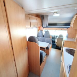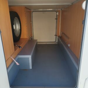 Fridge, Roof hatch, Cassette blinds, Cassette WC, Central heating, Ignition interlock, Stove, Hot water boiler, Sink, Double bed, Freezer compartment, Power steering, Sun shade, Bicycle rack, Radio, Shower, Turbo, Trumatic, Roof railing/ladder