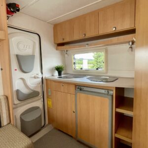 Fridge, Cassette WC, Roof hatch, Passenger area carpets, Stove, Sink, Trumatic, Support legs, Rear kitchen