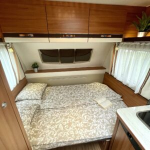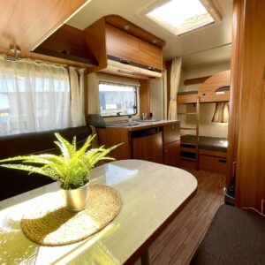 Trumatic, Fridge, Cassette WC, Cassette blinds, Roof hatch, Bunk bed, Stove, Hot water boiler, Freezer compartment, Sink, Electric heating cartridge, TV-antenni tai lautasantenni, Support legs