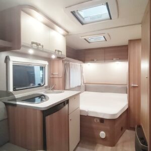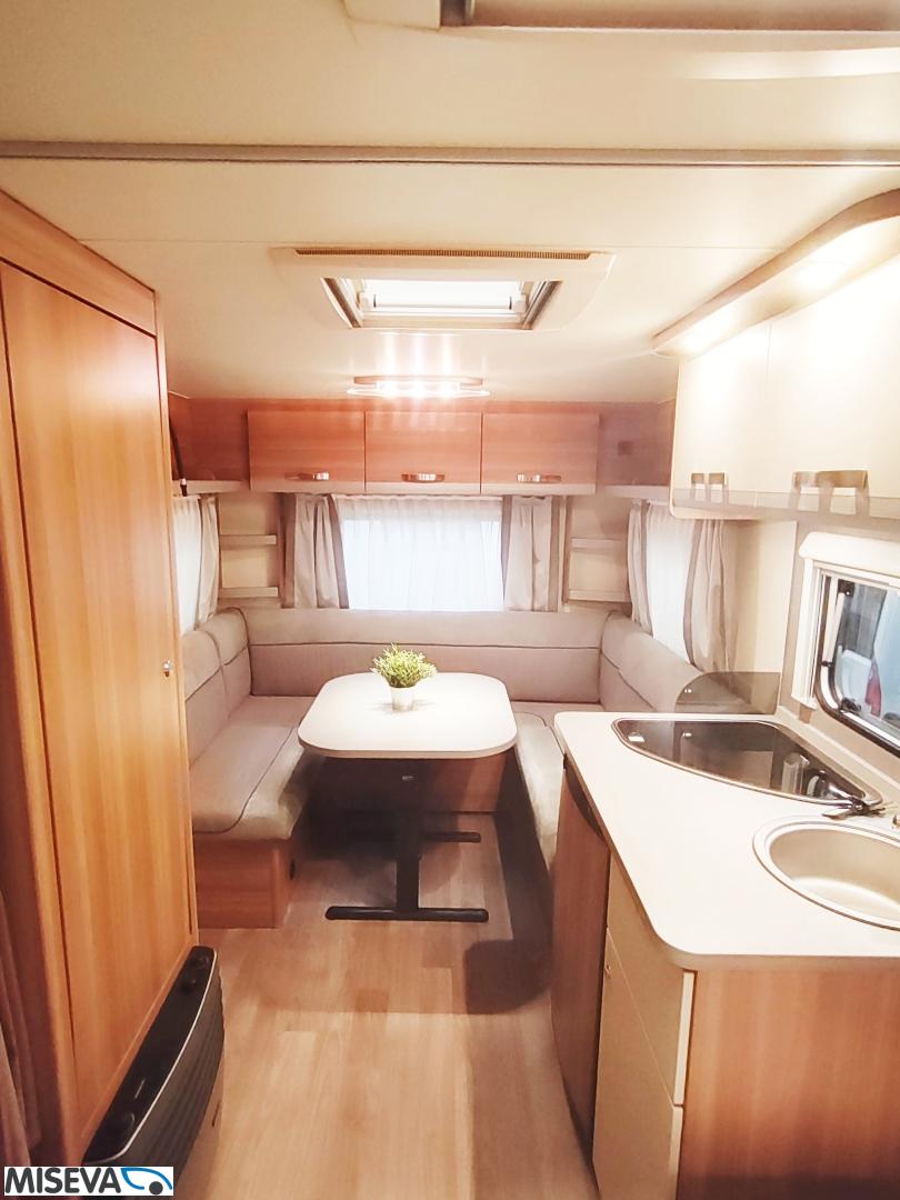 Fridge, Cassette WC, Cassette blinds, Stove, Double bed, Electric heating cartridge, TV-antenni tai lautasantenni, Support legs, Sun shade, kwh-mittari, Trumatic, Roof hatch, Freezer compartment, Sink