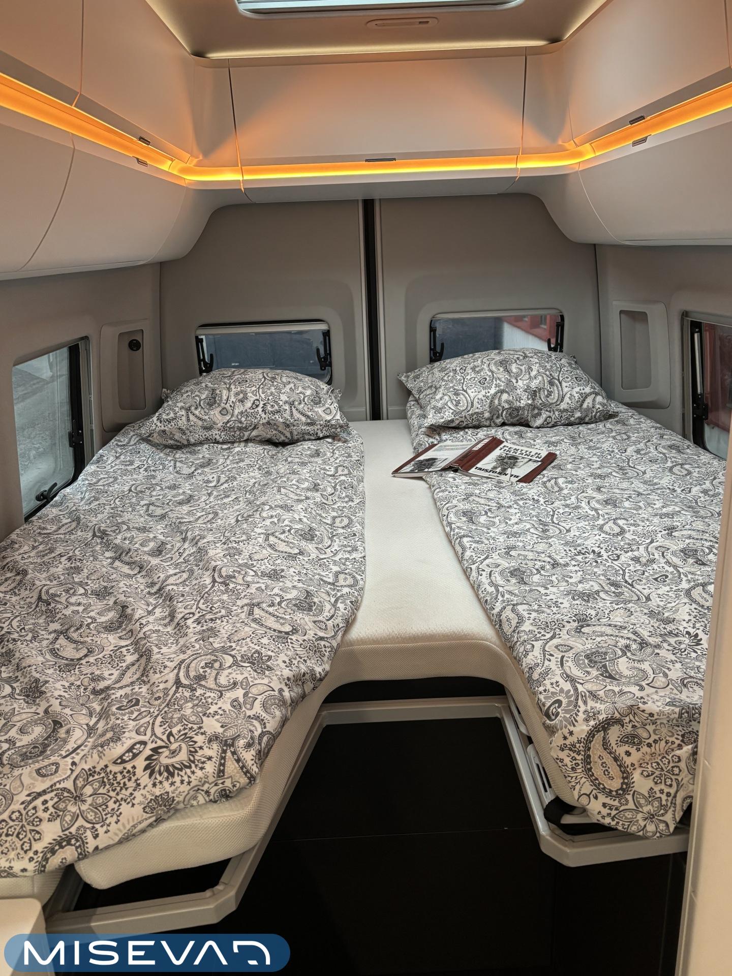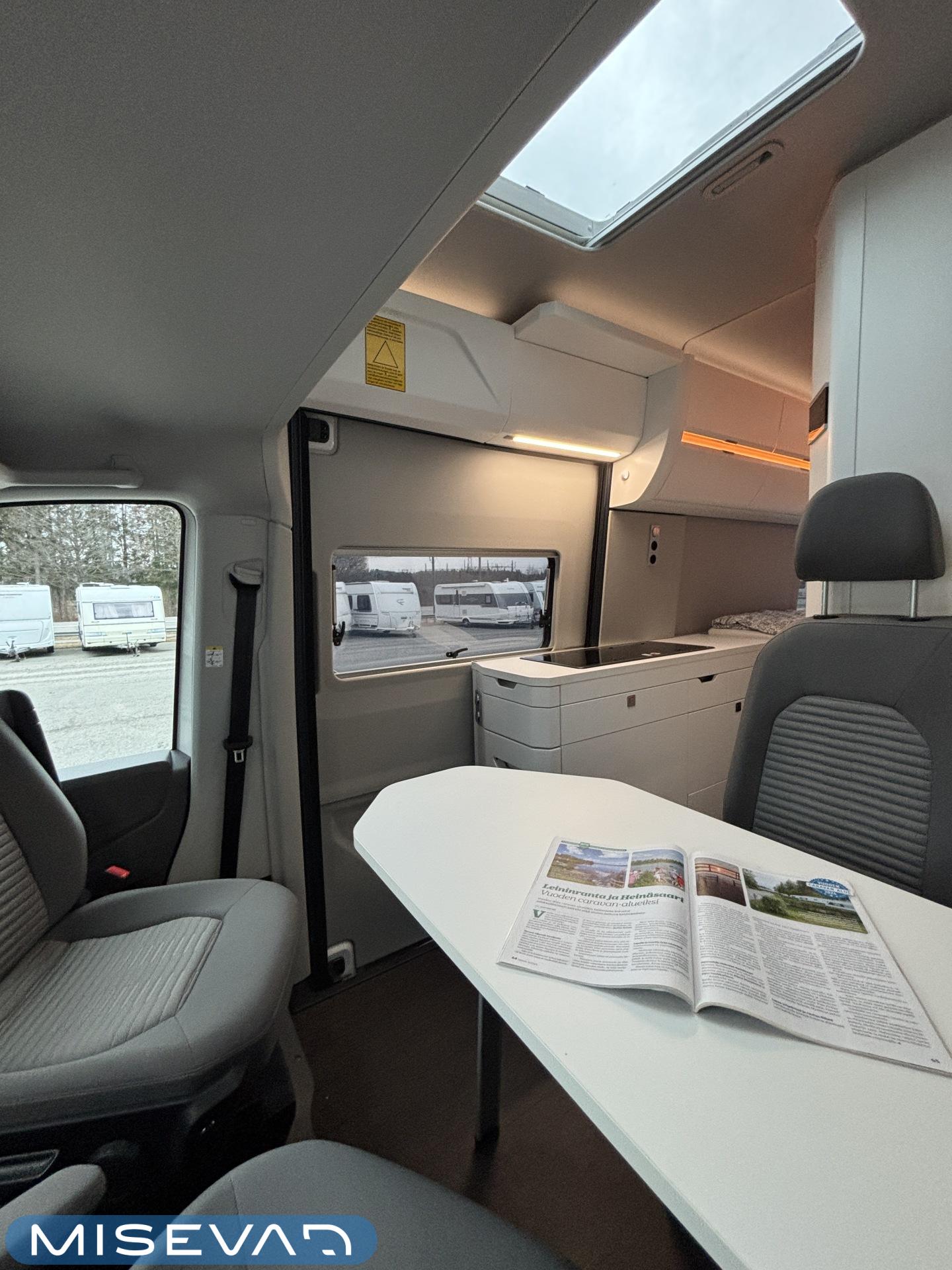 ABS brakes, Airbag, Trip computer, Special wheels, Separate beds, Service history, Cab air conditioning, Fridge, Cassette WC, Cassette blinds, Roof hatch, Keskuslukitus: Kaukosäätöinen, Ignition interlock, Stove, Hot water boiler, Sun shade, Power steering, Freezer compartment, Sink, Pysäköintikamera, Bicycle rack, Radio, Shower, Electric windows, Electric heating cartridge, Power side mirrors, Electric steps, Trumatic, Turbo, USB, Vakionopeudensäädin, ohjaamon kasettiverhot, pullonvaihtaja