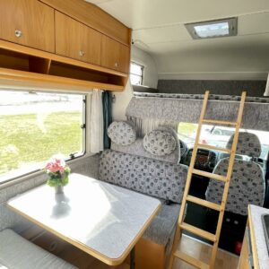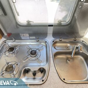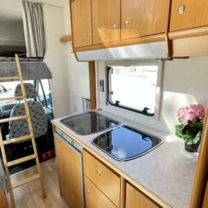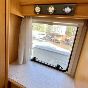 CD-soitin, Fridge, Cassette WC, Cassette blinds, Roof hatch, Hot water boiler, Stove, Sun shade, Power steering, Freezer compartment, Double bed, Sink, Shower, Rear box, Bicycle rack, Turbo, Trumatic, Towing hook, Engine heater, Roof railing/ladder