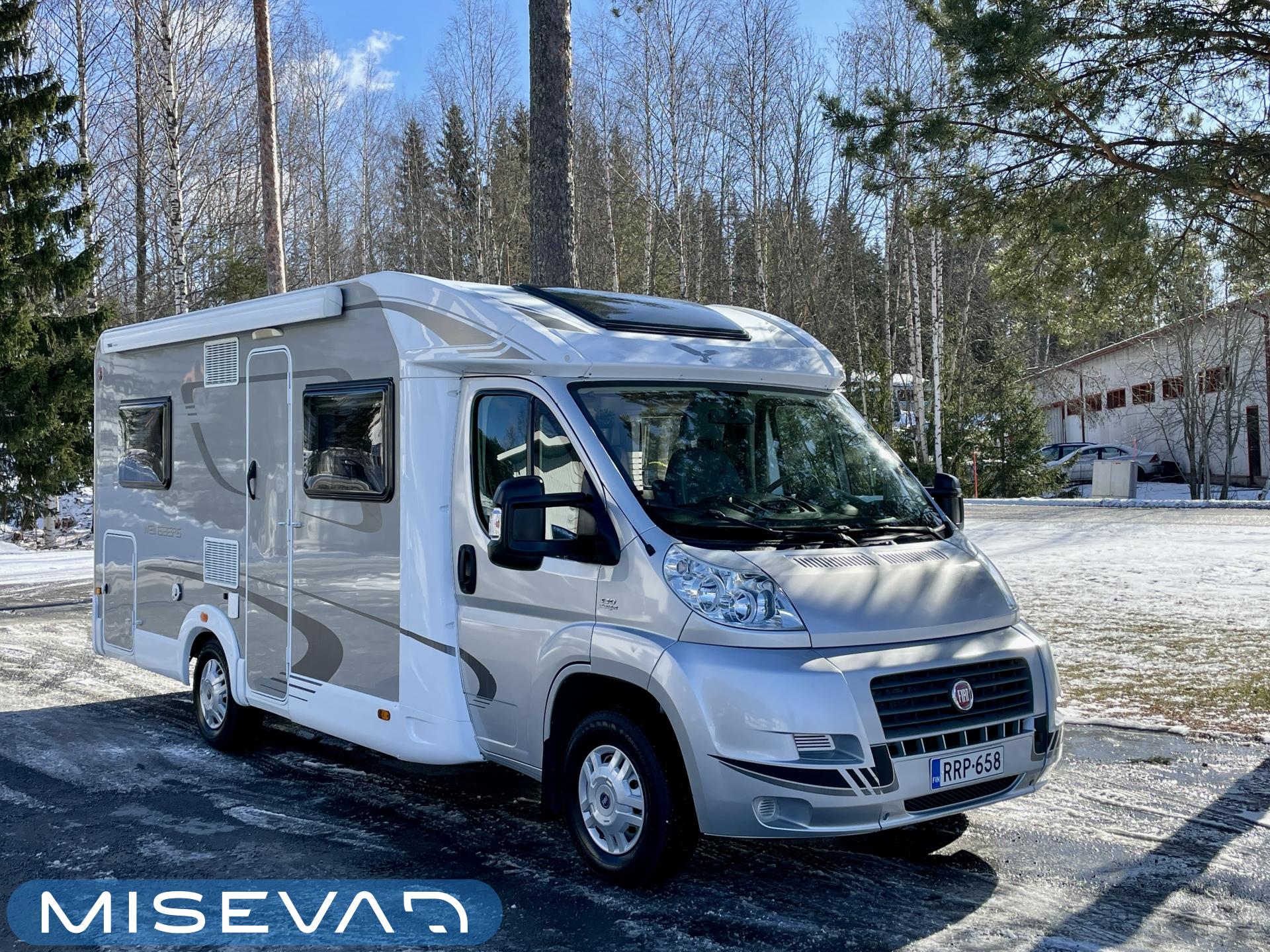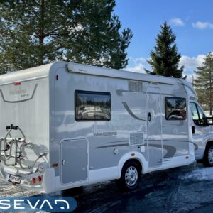 Ilmastointi: Manuaalinen, Two tyre sets, Bicycle rack, Pitkittäinen parivuode, Sun shade, Lattialämmitys- sähköinen, Laskuvuode, ABS brakes, Airbag, Trip computer, Cab air conditioning, Fridge, Cassette WC, Cassette blinds, Roof hatch, Engine heater, Stove, Passenger area carpets, Floor heating, Ignition interlock, Central heating, Keskuslukitus: Kaukosäätöinen, Traction control, Hot water boiler, Power steering, Freezer compartment, Double bed, Shower, Radio, Electric windows, Electric heating cartridge, Power side mirrors, Trumatic, Turbo, Vakionopeudensäädin
