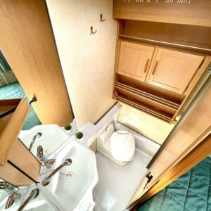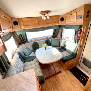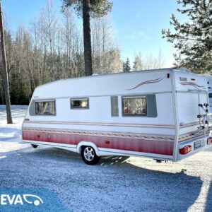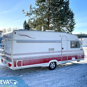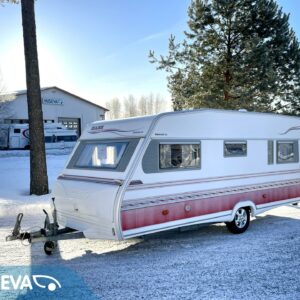 Alde, Fridge, Cassette WC, Floor heating, Stove, Hot water boiler, Sun shade, Fluid circulation heating, Double bed, Electric heating cartridge, Support legs, Cassette blinds, Roof hatch, Freezer compartment, Special wheels, Sink, Radio, TV-antenni tai lautasantenni