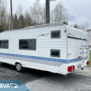 Alde, Solar panel, Special wheels, Fridge, Two tyre sets, Cassette WC, Roof railing/ladder, Roof hatch, Bunk bed, Stove, Hot water boiler, Sun shade, Fluid circulation heating, Freezer compartment, Double bed, Sink, Bicycle rack, Radio, Shower, Electric heating cartridge, Talvirenkaat(nasta), kwh-mittari