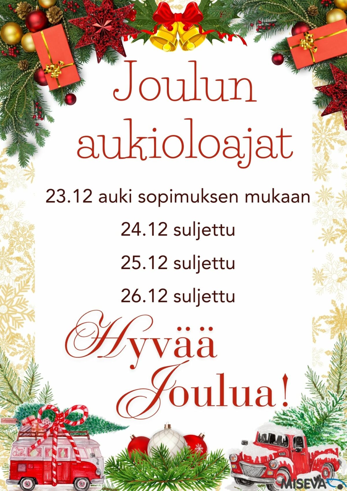 Joulun aukioloajat