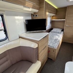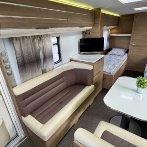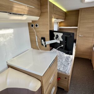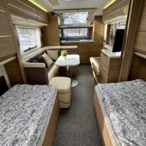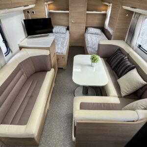 Alde, Separata sängar, Kassettgardiner, Kassettoalett, Stödben, Spis, Varmvattenberedare, Taklucka, Golvvärme, Kylskåp, Vätsecirkulationsvärme, Frysfack, Tvättho, Elpatron, Dusch, TV-antenni tai lautasantenni, Solpanel, Radio