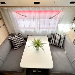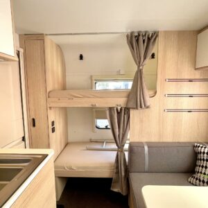 Kylskåp, Kassettoalett, Kassettgardiner, Taklucka, Våningssäng, Golvvärme, Spis, Varmvattenberedare, Frysfack, Parsäng, Tvättho, Dusch, Elpatron, TV-antenni tai lautasantenni, Trumatic, Stödben, USB, Truma, Lattialämmitys (sähkö), Kesärenkaat, ranskalainen vuode, televisioteline, Asuinosan hyttysovi/verho