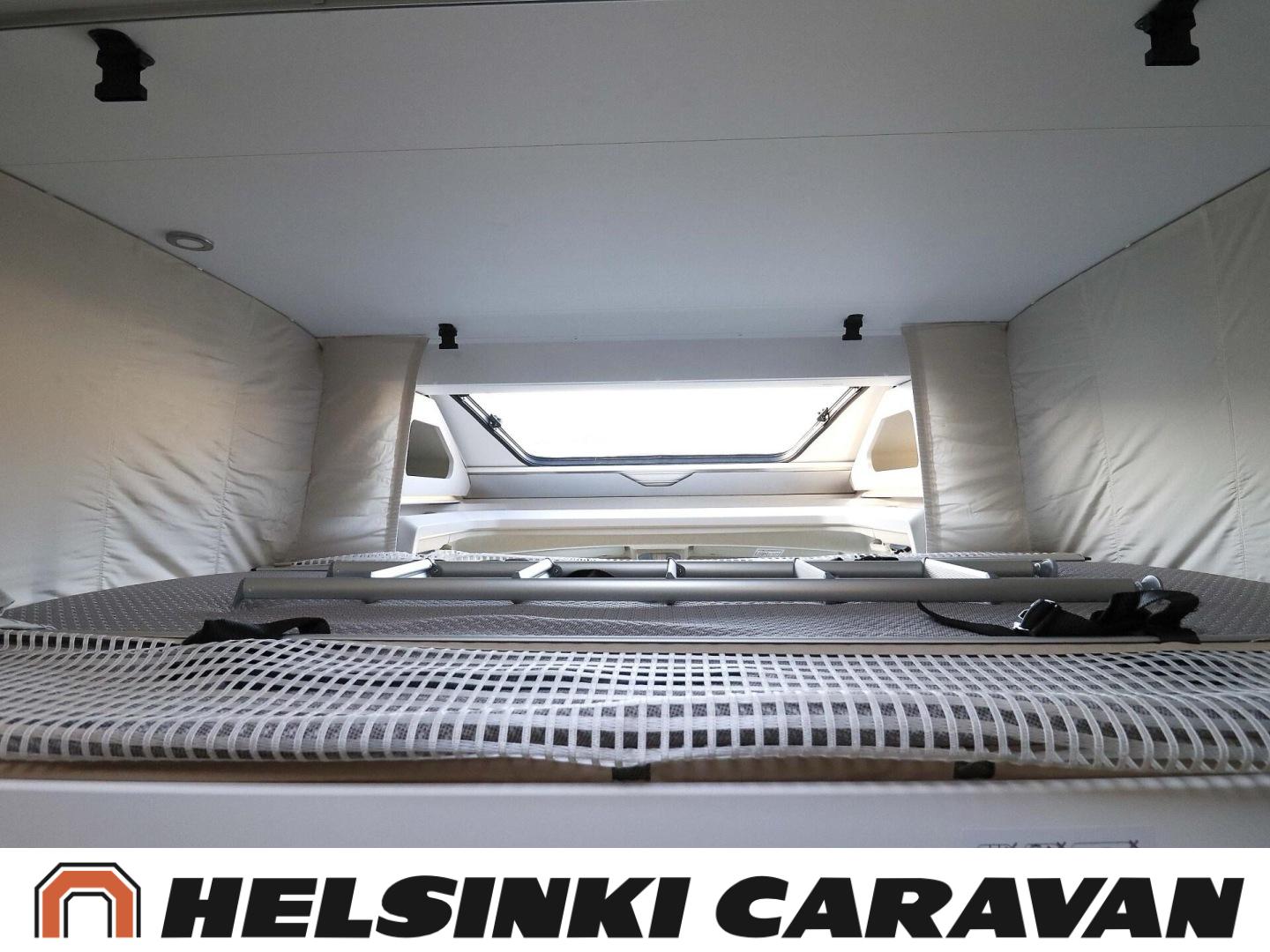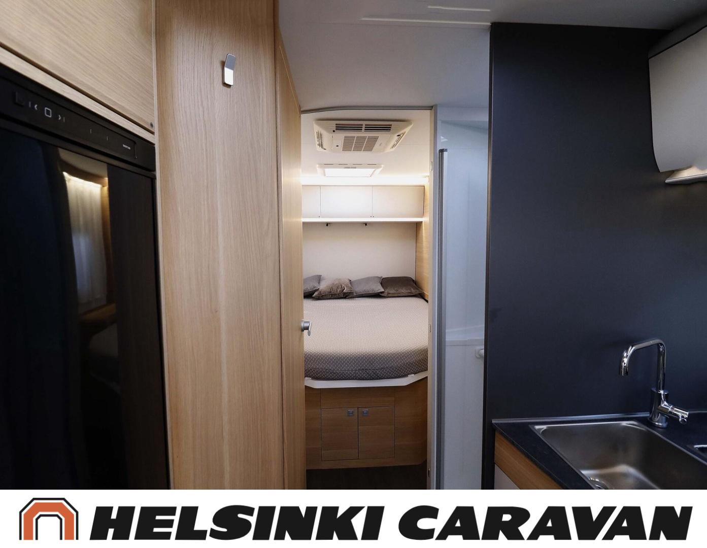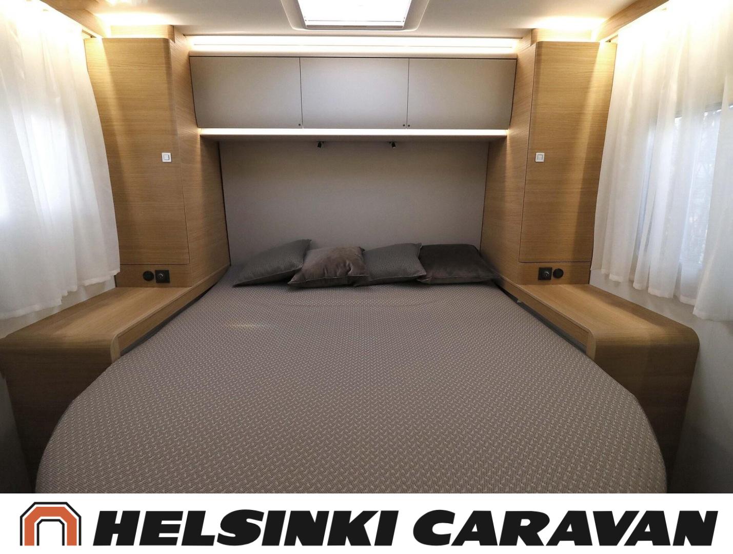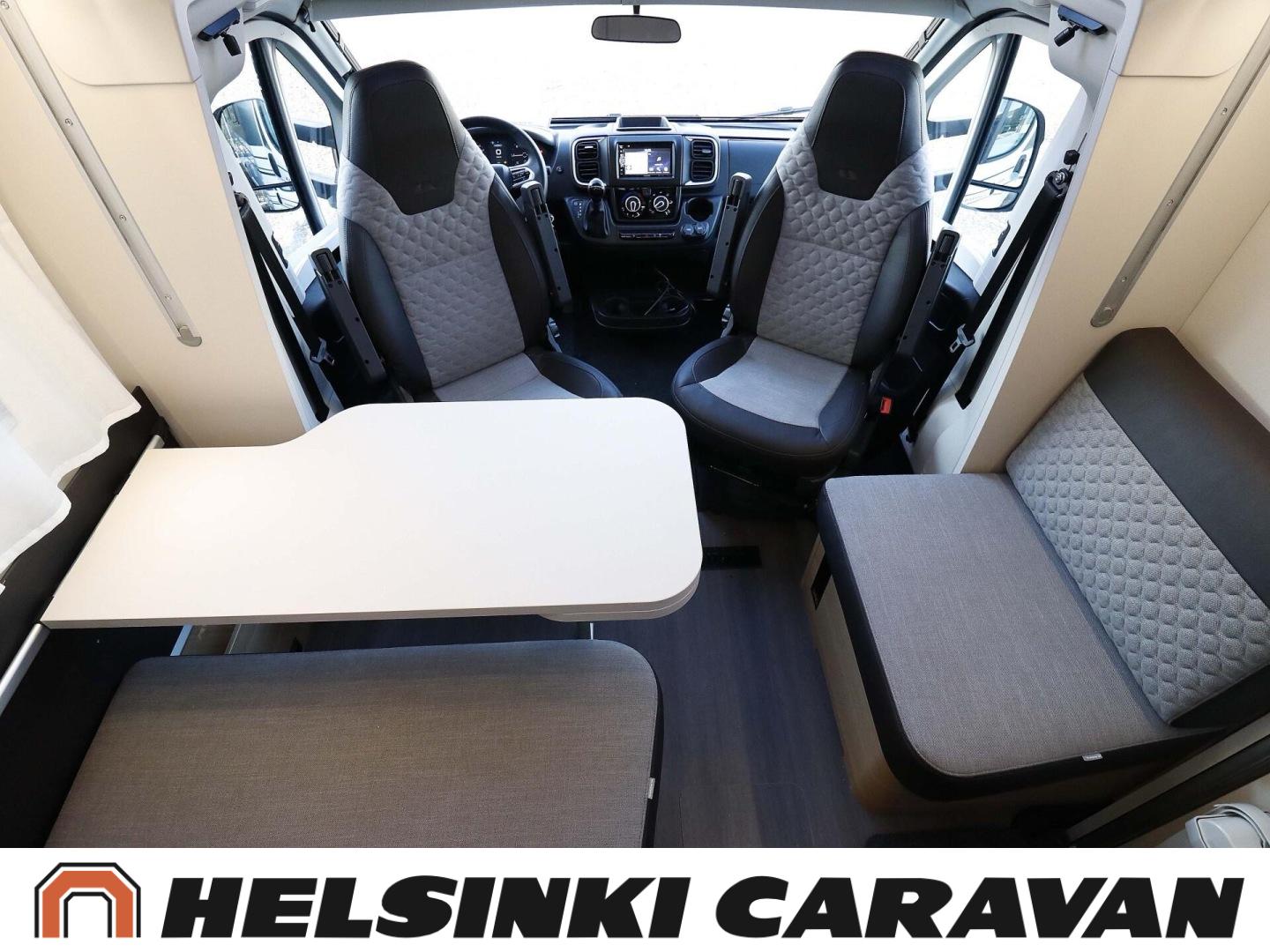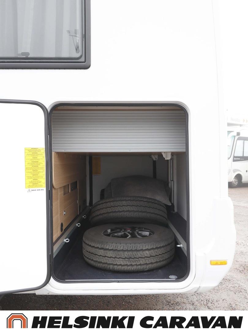 System för stabilitetskontroll, Bildator, Specialfälgar, Två däck, Elpatron, Isolerad gråvattentank, Luftkonditionering i körutrymmet, Kylskåp, Kassettoalett, Takstänger/stege, Taklucka, Våningssäng, Centralvärme, Golvvärme, Golvmattor i boendedelen, Slirskydd, Varmvattenberedare, Frysfack, Parsäng, Dusch, Elektriska speglar, Elektrisk trappa, Trumatic, Vakionopeudensäädin, Pysäköintikamera
