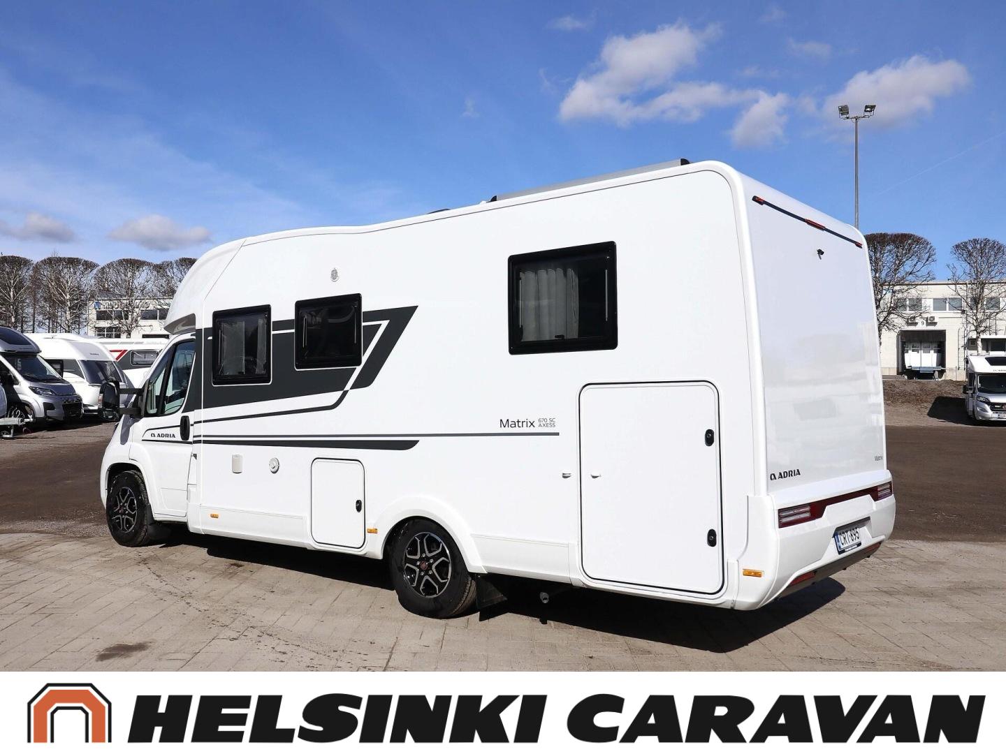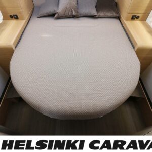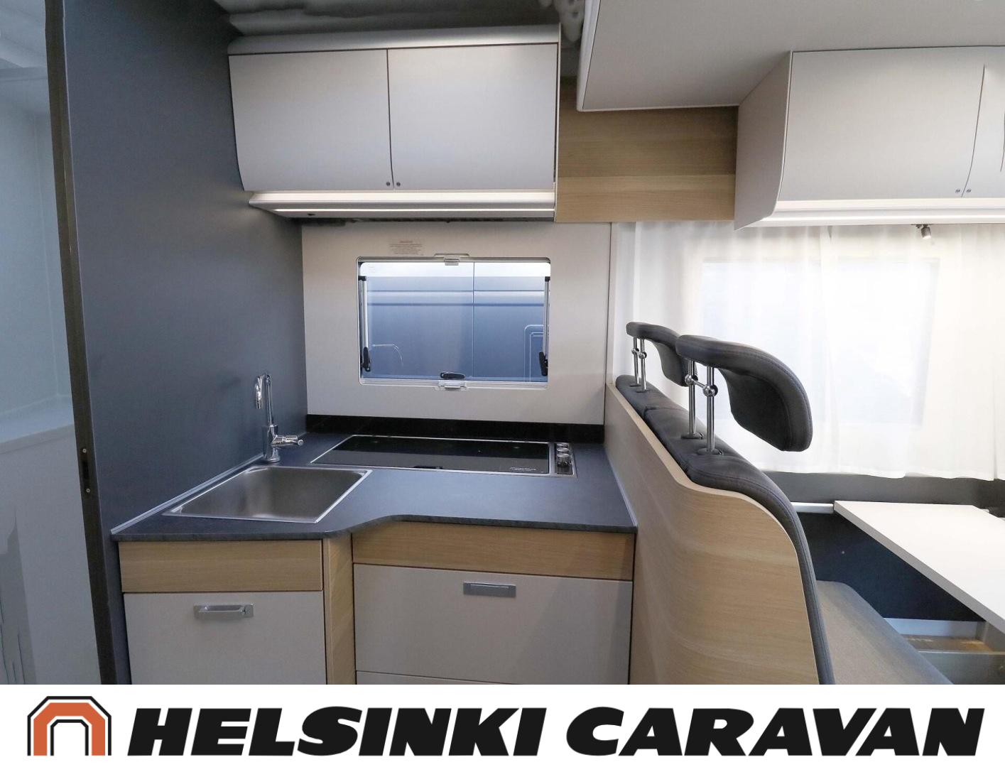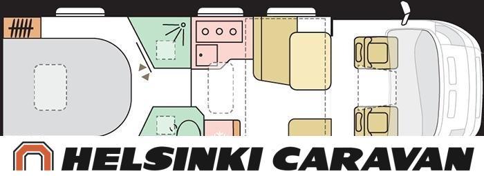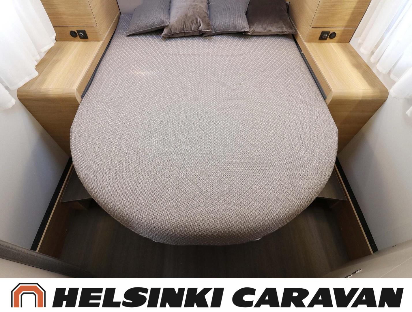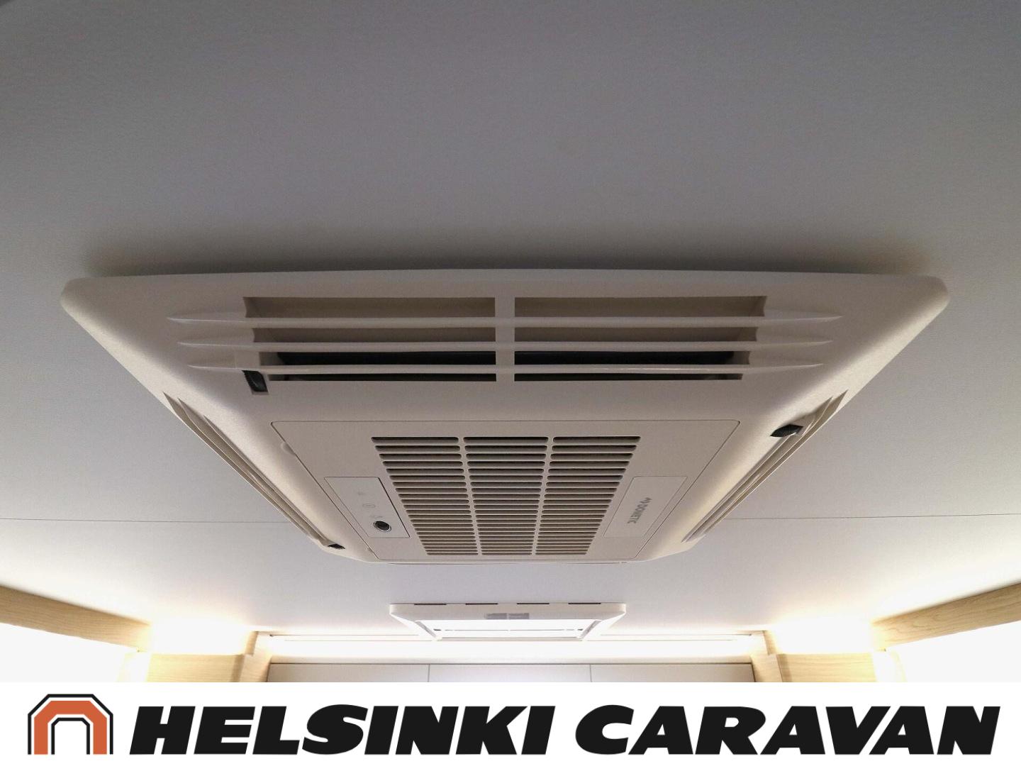 System för stabilitetskontroll, Bildator, Specialfälgar, Två däck, Elpatron, Isolerad gråvattentank, Luftkonditionering i körutrymmet, Kylskåp, Kassettoalett, Takstänger/stege, Taklucka, Våningssäng, Centralvärme, Golvvärme, Golvmattor i boendedelen, Slirskydd, Varmvattenberedare, Frysfack, Parsäng, Dusch, Elektriska speglar, Elektrisk trappa, Trumatic, Vakionopeudensäädin, Pysäköintikamera