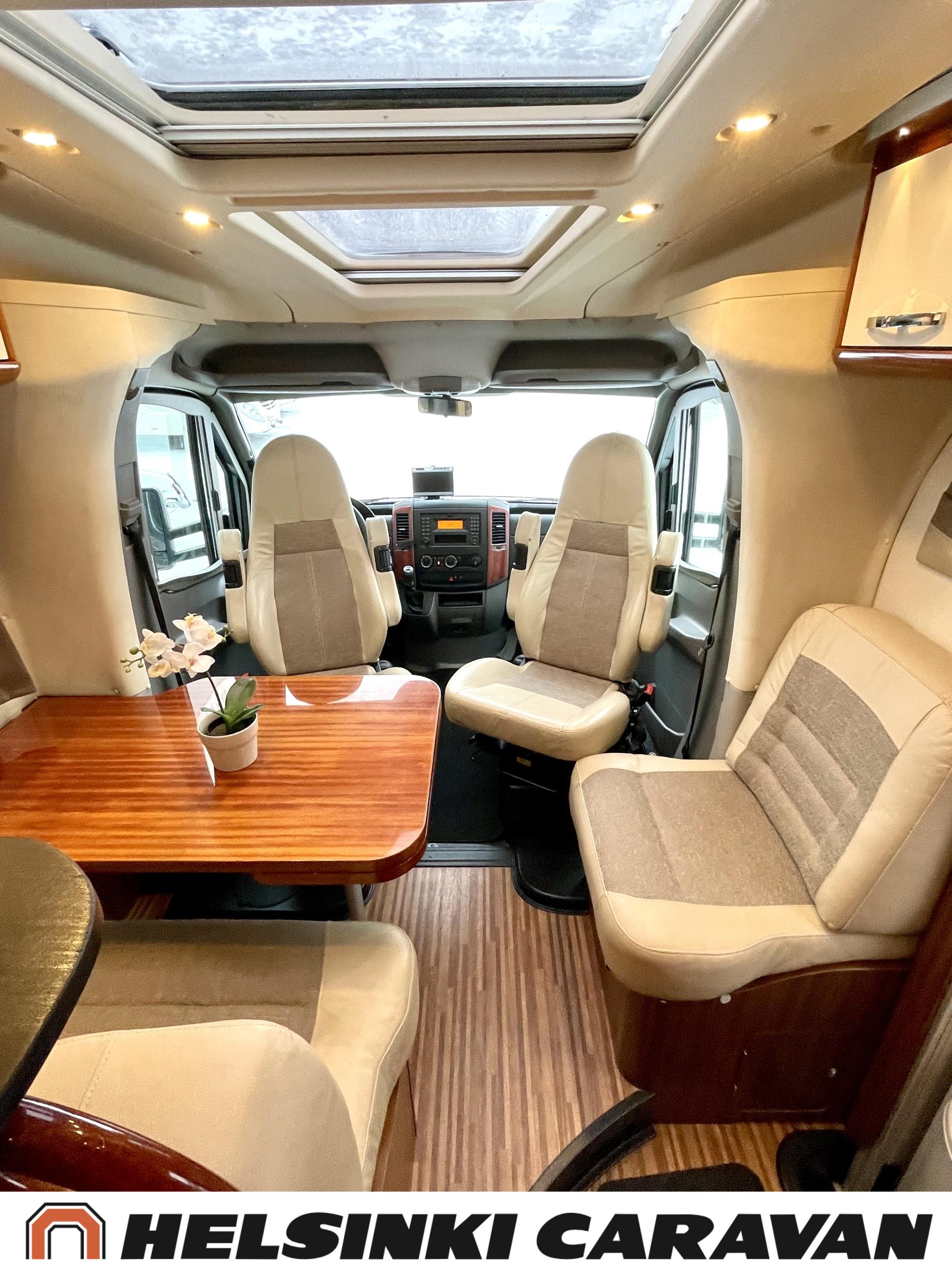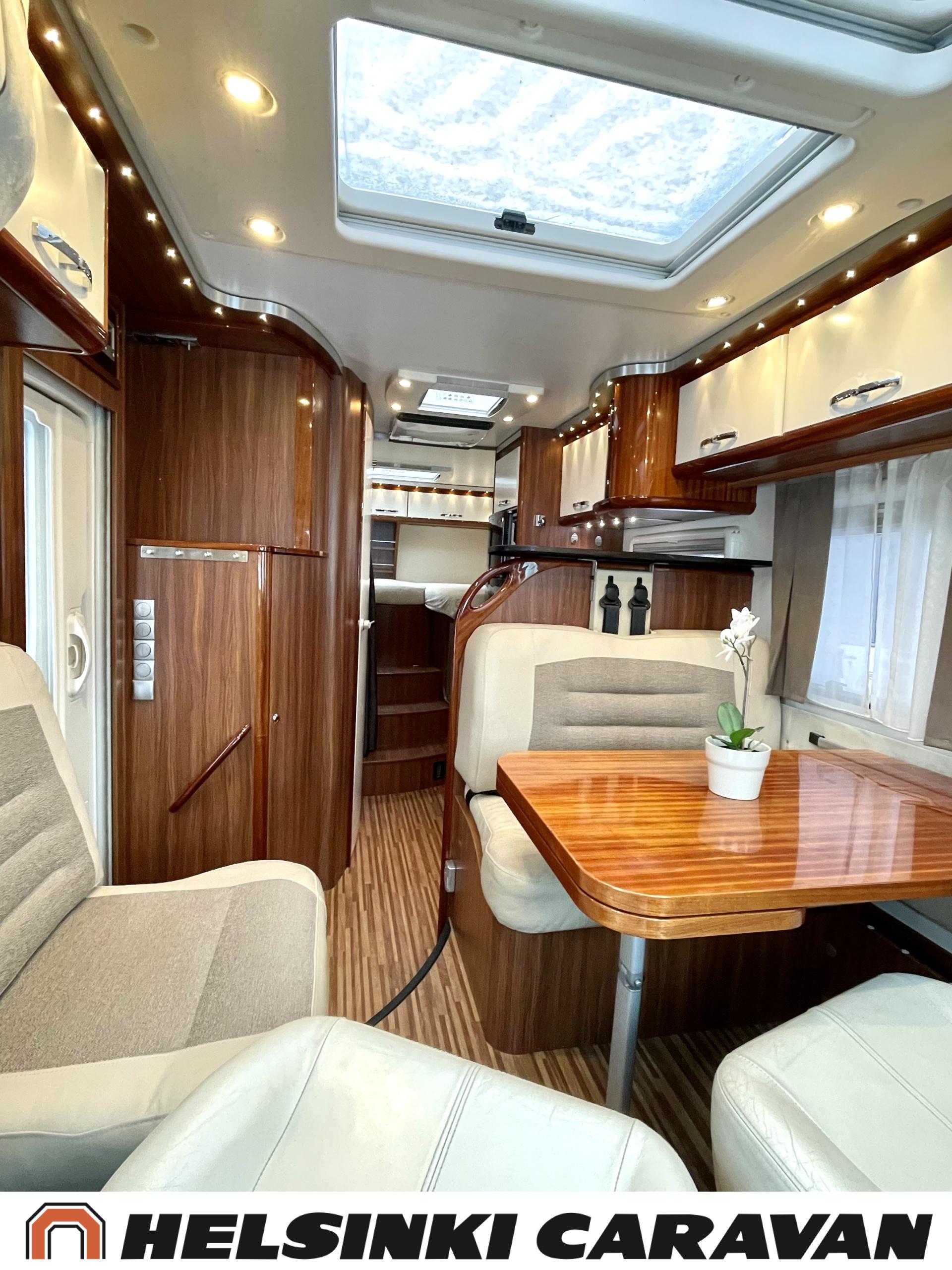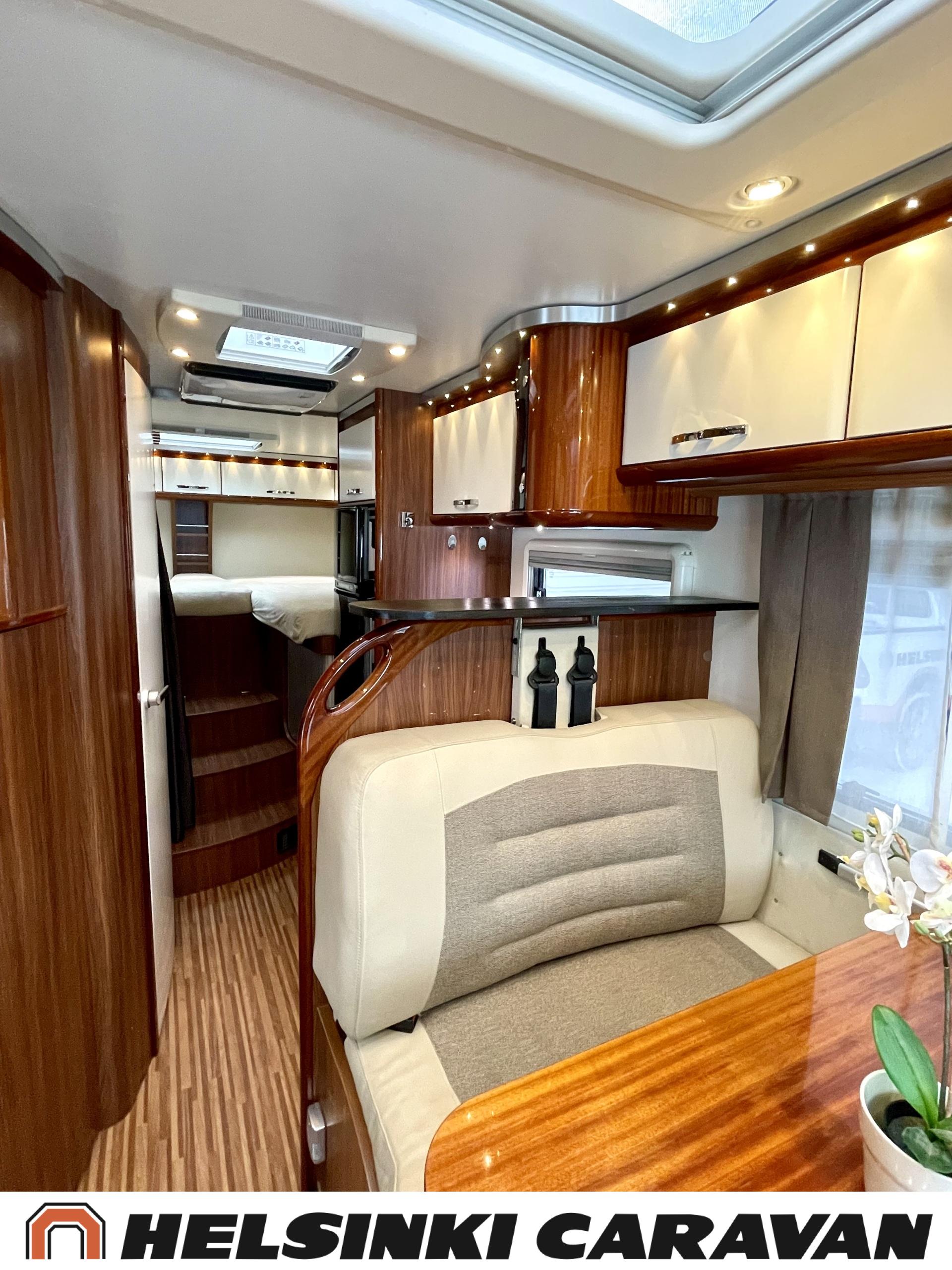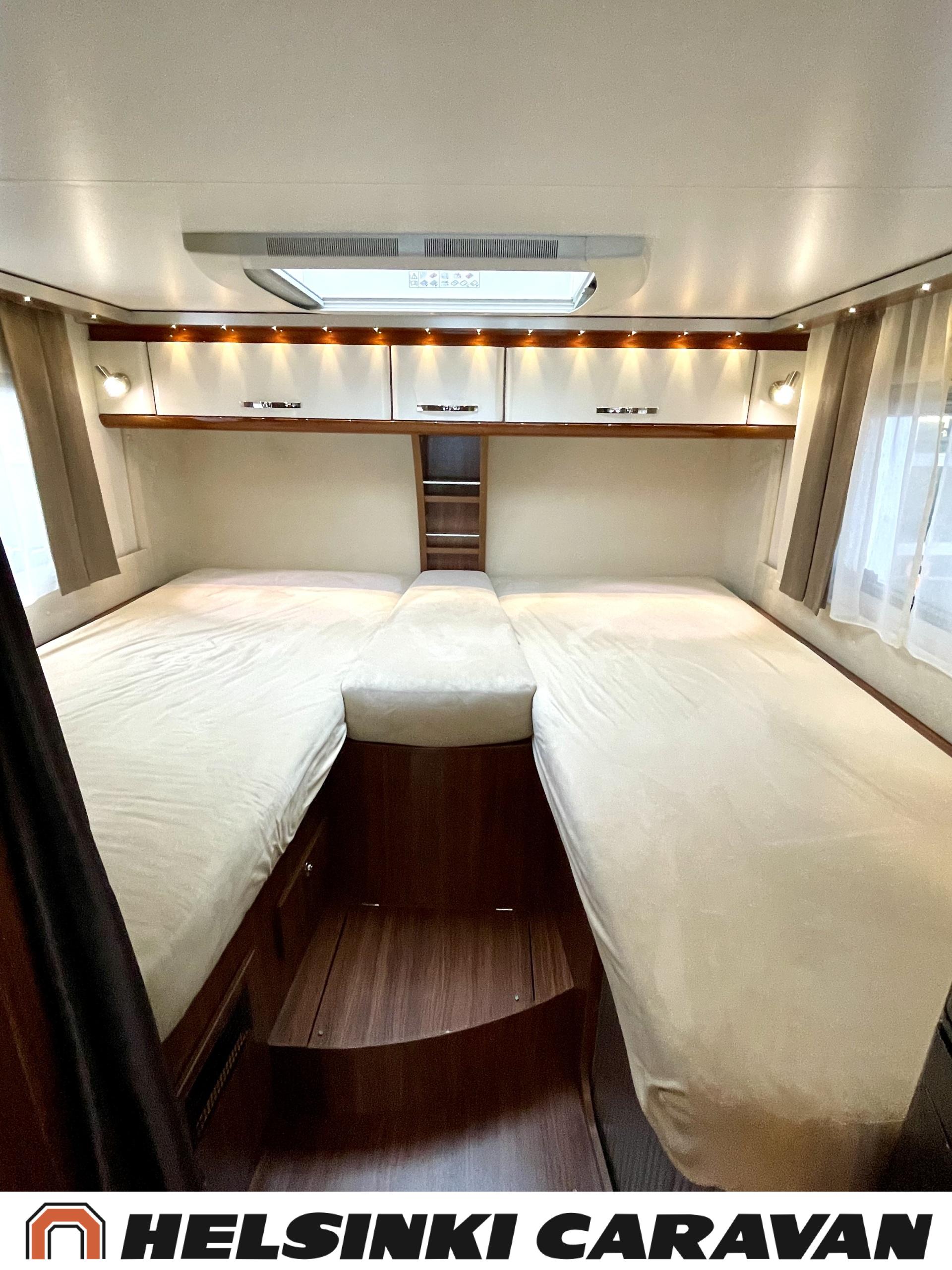 Alde, Golvvärme, Isolerad gråvattentank, Elpatron, Luftkonditionering i körutrymmet, Ilmastointi (asuintila), Gasugn, ABS-bromsar, Airbag, Bildator, Vätsecirkulationsvärme, Spis, Varmvattenberedare, Ilmastointi: Automaattinen, Kassettoalett, Kassettgardiner, Keskuslukitus: Kaukosäätöinen, Centralvärme, Startspärr, Markis, Servostyrning, Frysfack, Turbo, Vakionopeudensäädin, Radio, Elektriska speglar, Elektriska fönster, Specialfälgar, Separata sängar, Kylskåp, Taklucka, Elektrisk trappa, TV-antenni tai lautasantenni, Dragkrok, Vakionopeuden säädin, Alde lämmönvaihdin, Två däck