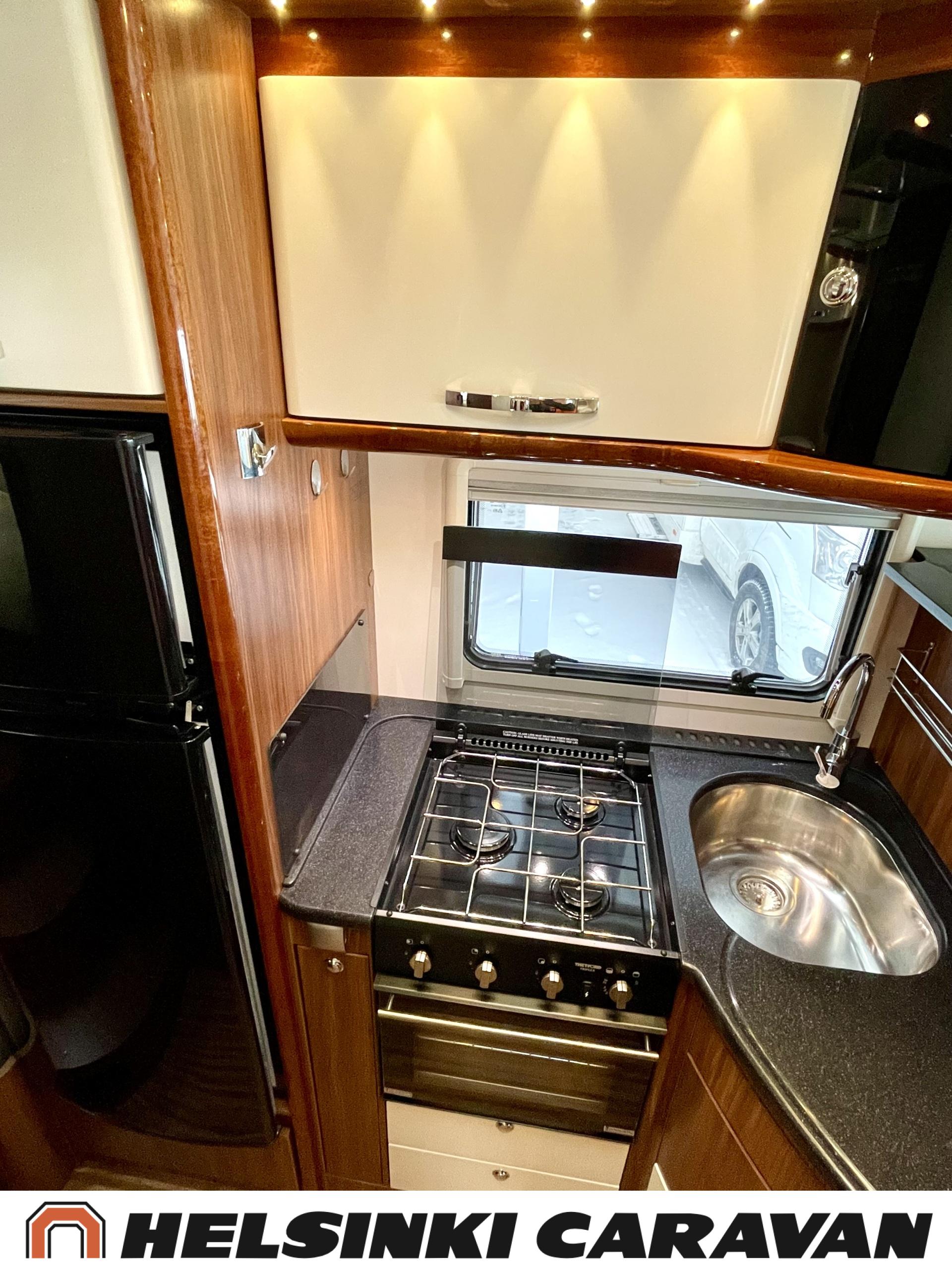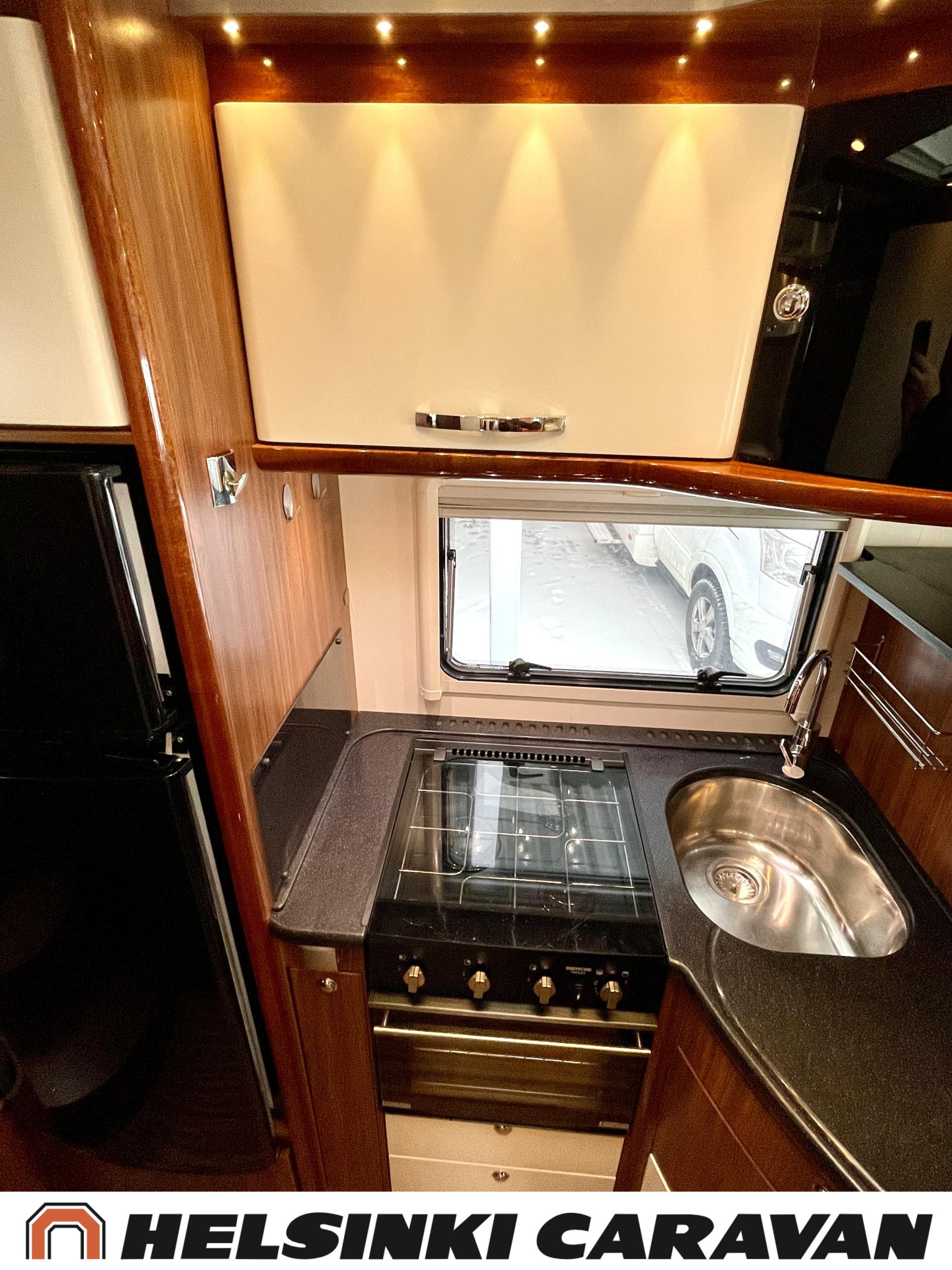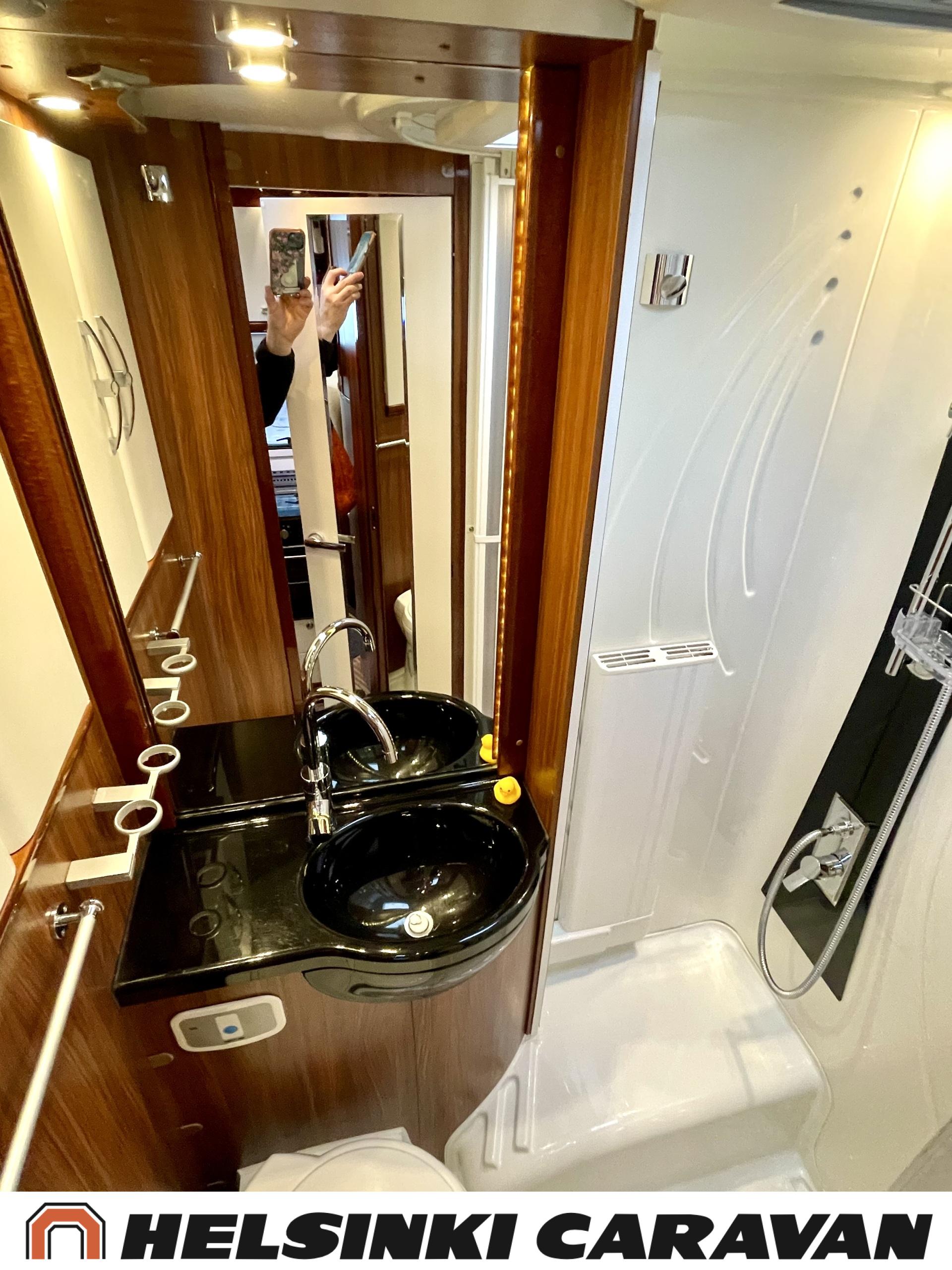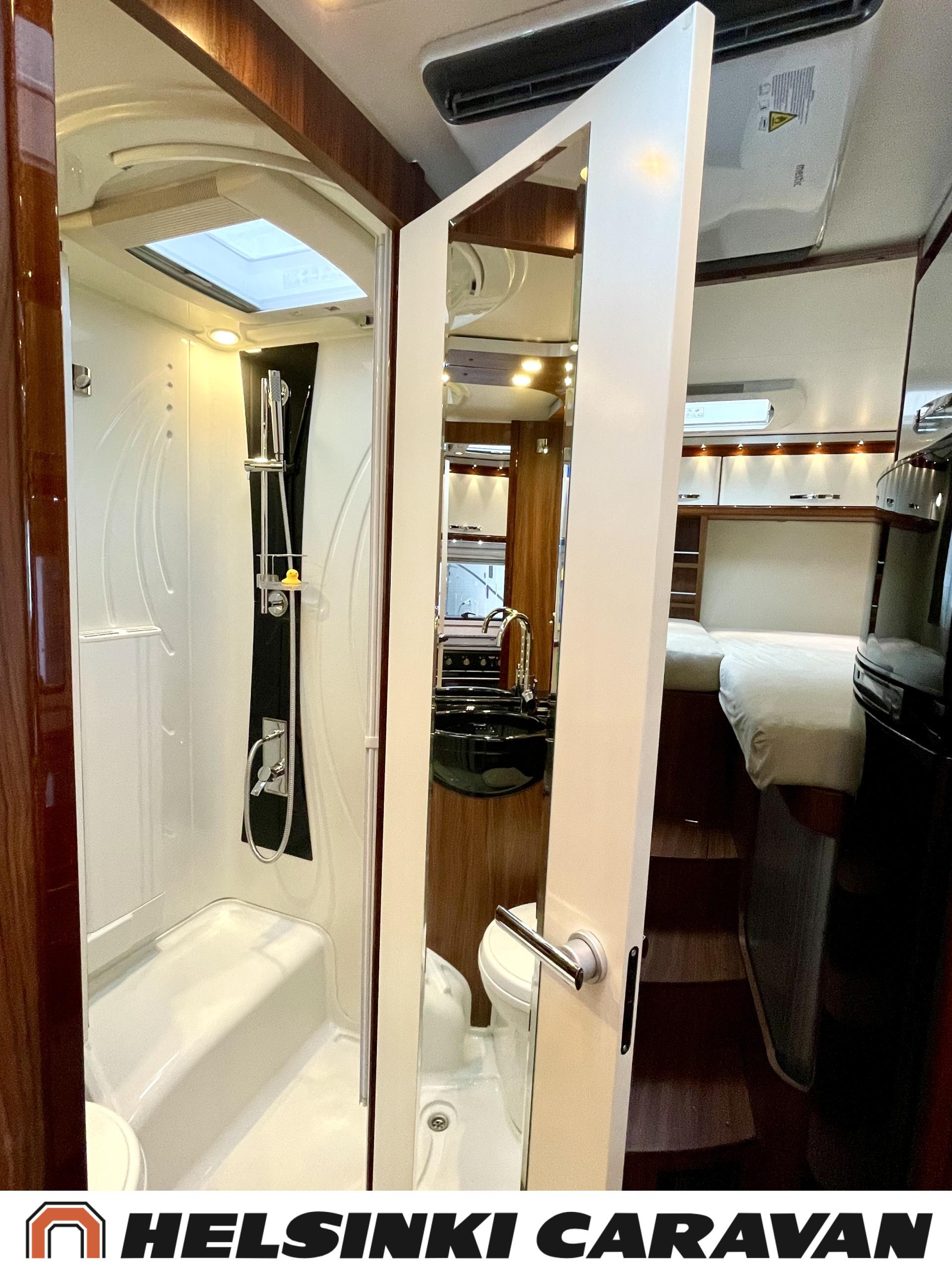 Alde, Golvvärme, Isolerad gråvattentank, Elpatron, Luftkonditionering i körutrymmet, Ilmastointi (asuintila), Gasugn, ABS-bromsar, Airbag, Bildator, Vätsecirkulationsvärme, Spis, Varmvattenberedare, Ilmastointi: Automaattinen, Kassettoalett, Kassettgardiner, Keskuslukitus: Kaukosäätöinen, Centralvärme, Startspärr, Markis, Servostyrning, Frysfack, Turbo, Vakionopeudensäädin, Radio, Elektriska speglar, Elektriska fönster, Specialfälgar, Separata sängar, Kylskåp, Taklucka, Elektrisk trappa, TV-antenni tai lautasantenni, Dragkrok, Vakionopeuden säädin, Alde lämmönvaihdin, Två däck