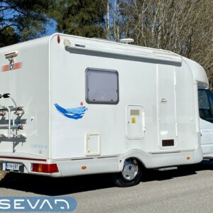 Truma, Kylskåp, Kassettoalett, Kassettgardiner, Taklucka, Spis, Varmvattenberedare, Markis, Servostyrning, Frysfack, Parsäng, Tvättho, Cykelställ, Radio, Dusch, Elektriska fönster, Elektriska speglar, Elektrisk trappa, TV-antenni tai lautasantenni, Turbo, Ilmastointi (ohjaamo), Solpanel, Airbag, Navigator, Dimljus, Vakionopeudensäädin