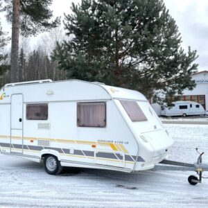Jääkaappi,Kasetti WC,Kasettiverhot,Kattoluukku,Lattialämmitys,Liesi,Lämminvesiboileri,Sähköpatruuna,Trumatic,Tukijalat