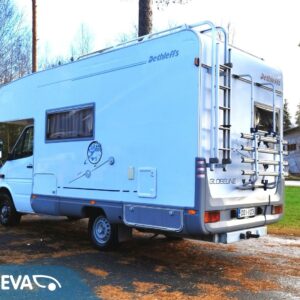 Kylskåp, Kassettoalett, Kassettgardiner, Kattokaiteet/tikaat, Taklucka, Centralvärme, Spis, Varmvattenberedare, Markis, Servostyrning, Frysfack, Parkeringsradar / kamera, Tvättho, Cykelställ, Stereo, Dusch, Elektrisk trappa, Bakre kök, Trumatic, Turbo, Dragkrok, Solpanel, Takstänger/stege, TV-antenni tai lautasantenni