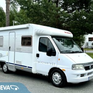 Kylskåp, Taklucka, Kassettoalett, Kassettgardiner, Två däck, Startspärr, Golvvärme, Spis, Varmvattenberedare, Tvättho, Parsäng, Frysfack, Servostyrning, Markis, Bränsledriven extravärmare, Cykelställ, Dusch, Elpatron, Dragkrok, Turbo