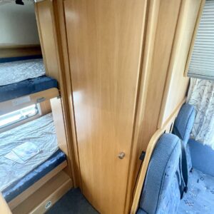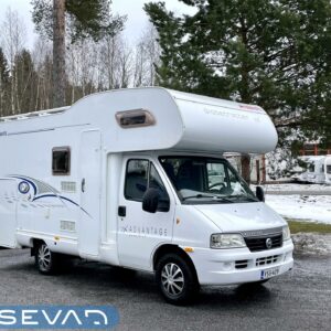 Kylskåp, Kassettoalett, Kassettgardiner, Taklucka, Våningssäng, Centralvärme, Startspärr, Golvmattor i boendedelen, Spis, Slirskydd, Varmvattenberedare, Tvättho, Parsäng, Frysfack, Servostyrning, Trumatic, Turbo, Dusch, Cykelställ, Takstänger/stege, Radio, CD-soitin