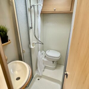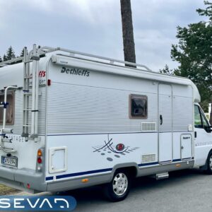 Kylskåp, Kassettoalett, Kassettgardiner, Taklucka, Golvmattor i boendedelen, Golvvärme, Centralvärme, Spis, Varmvattenberedare, Markis, Servostyrning, Cykelställ, Pysäköintikamera, Parsäng, Frysfack, Tvättho, Radio, TV-antenni tai lautasantenni, Turbo, Dusch, Takstänger/stege