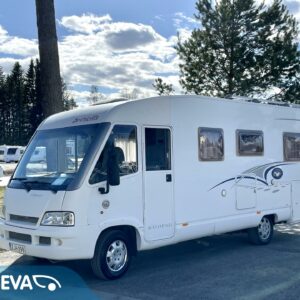 Solpanel, Luftkonditionering i körutrymmet, Ilmastointi: Manuaalinen, Kylskåp, Två däck, Kassettoalett, Kassettgardiner, Takstänger/stege, Taklucka, Centralvärme, Golvmattor i boendedelen, Spis, Varmvattenberedare, Markis, Servostyrning, Frysfack, Parsäng, Tvättho, Cykelställ, Radio, Dusch, Elektrisk trappa, TV-antenni tai lautasantenni, Trumatic, Dragkrok, Talvirenkaat(nasta), Kesärenkaat, Pysäköintikamera