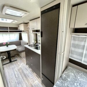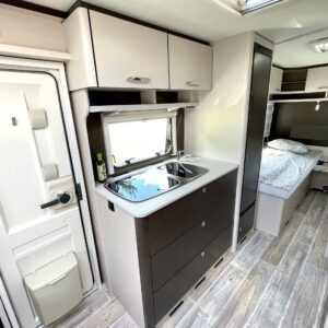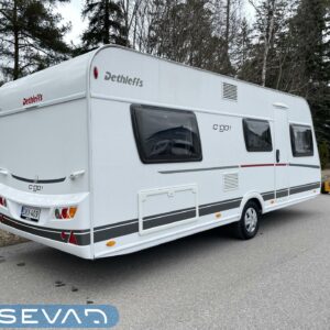 Separata sängar, Kylskåp, Kassettoalett, Kassettgardiner, Taklucka, Spis, Varmvattenberedare, Frysfack, Parsäng, Dusch, Trumatic, Stödben, Tvättho, Elpatron, Asuinosan hyttysovi/verho, televisio, kwh-mittari, Mikrovågsugn, TV-antenni tai lautasantenni