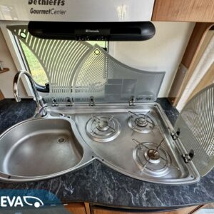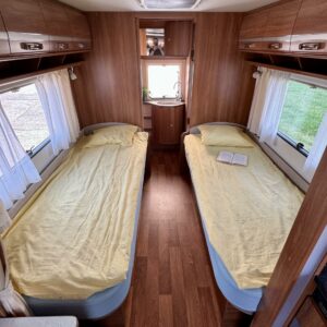 Alde, Separata sängar, Kylskåp, Kassettoalett, Kassettgardiner, Taklucka, Golvvärme, Spis, Varmvattenberedare, Vätsecirkulationsvärme, Frysfack, Tvättho, Elpatron, Stödben, Ilmastointi (asuintila), Lattialämmitys (sähkö)