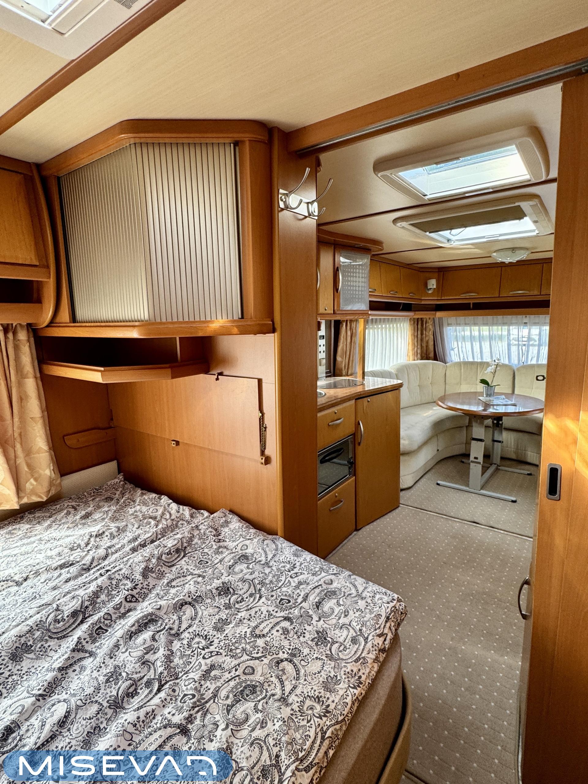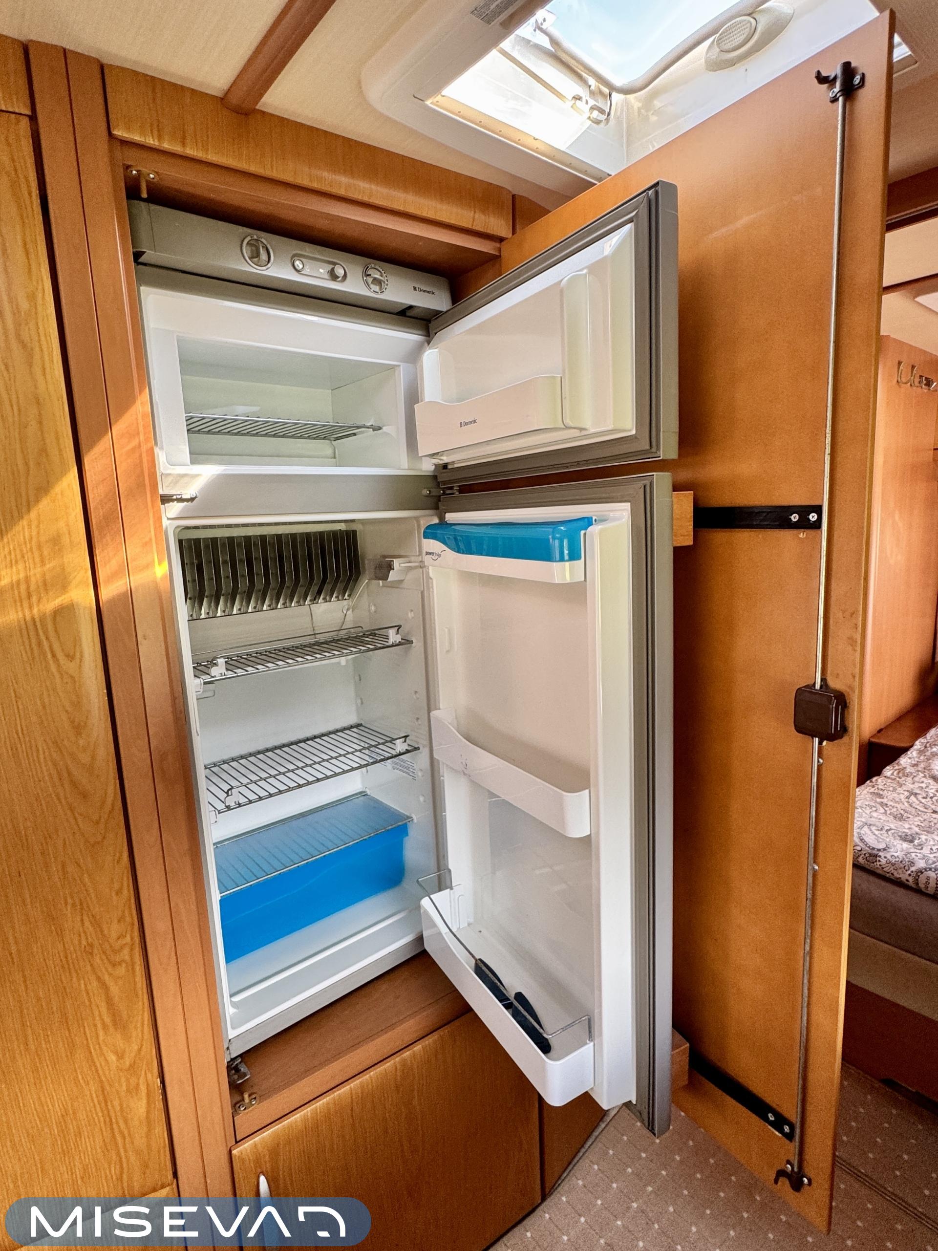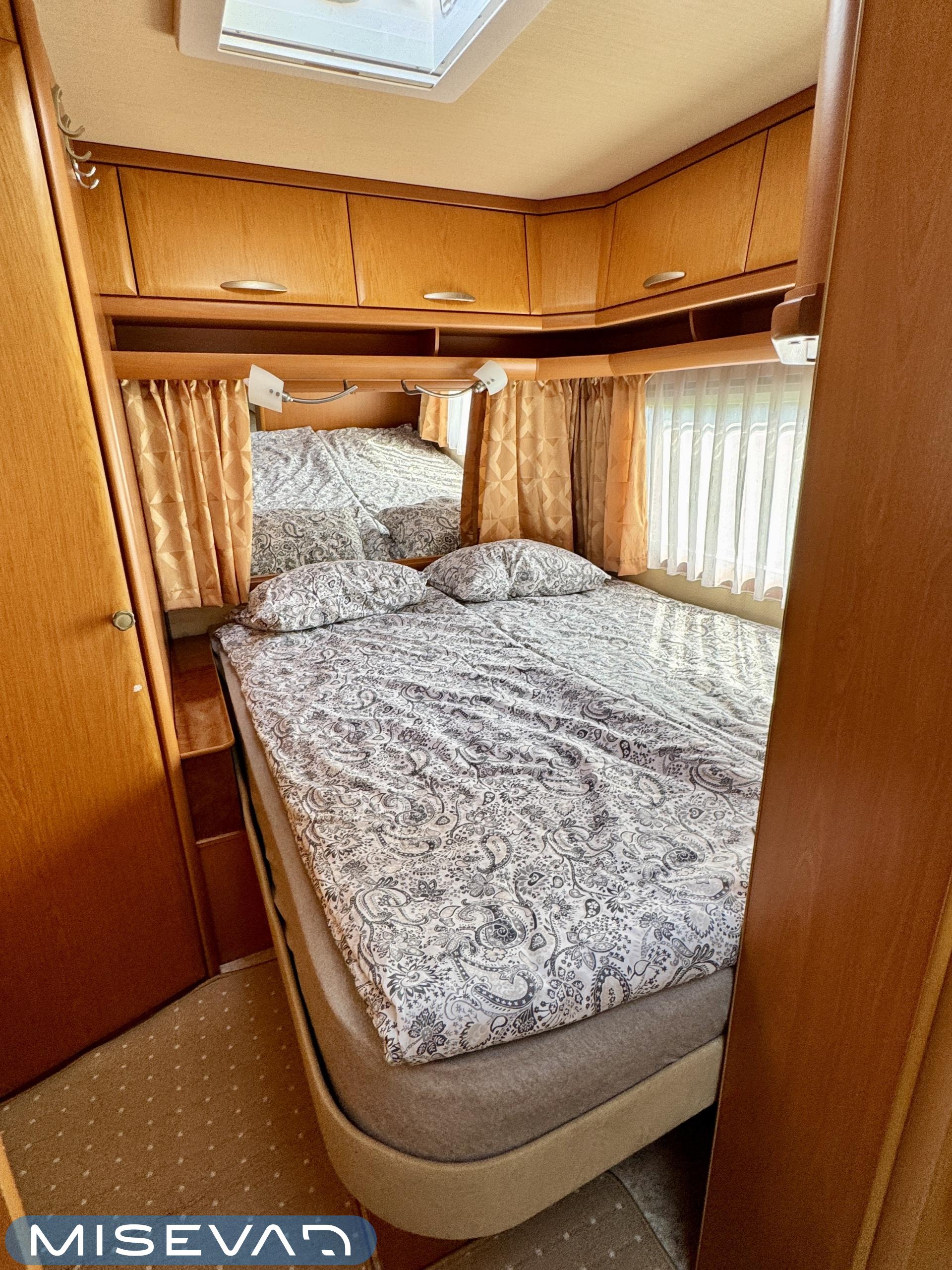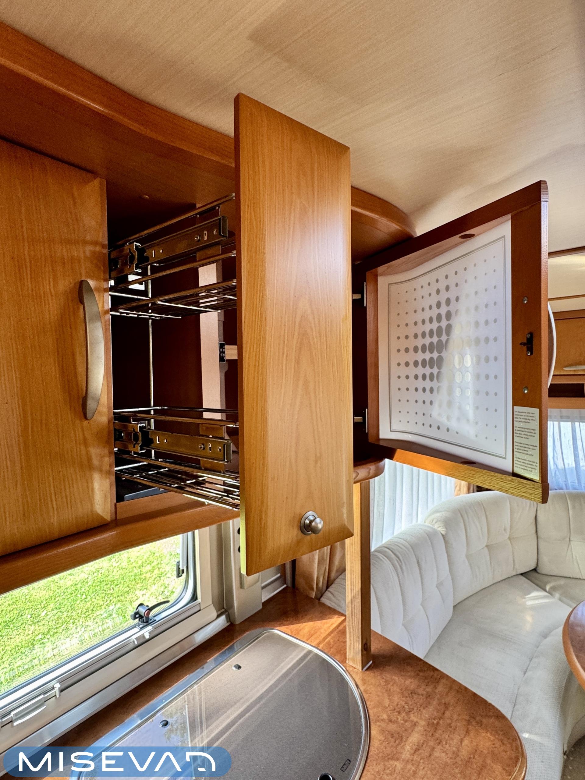 Alde, Elpatron, Kassettgardiner, Dusch, Taklucka, Kylskåp, Gasugn, Två däck, Kassettoalett, Spis, Markis, Radio, liesituuletin, Vätsecirkulationsvärme, Parsäng, Frysfack