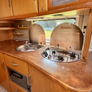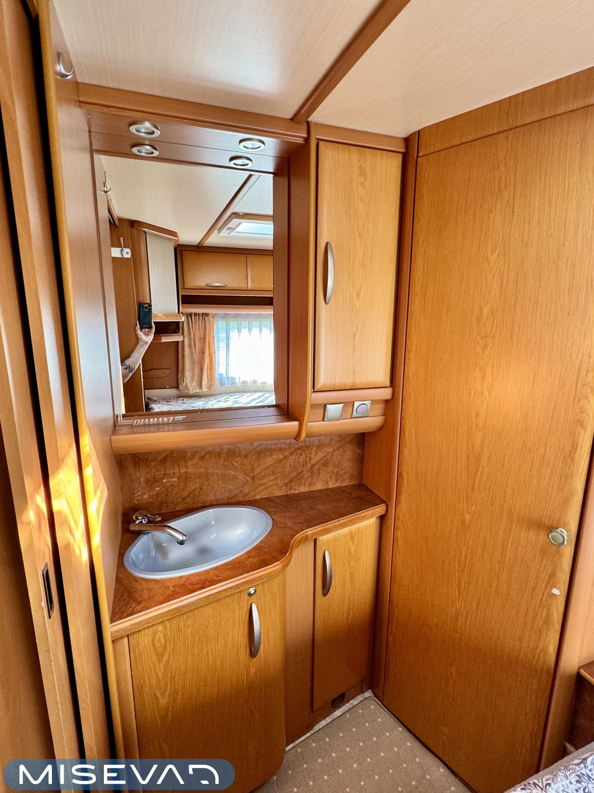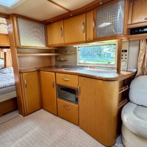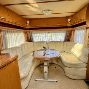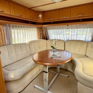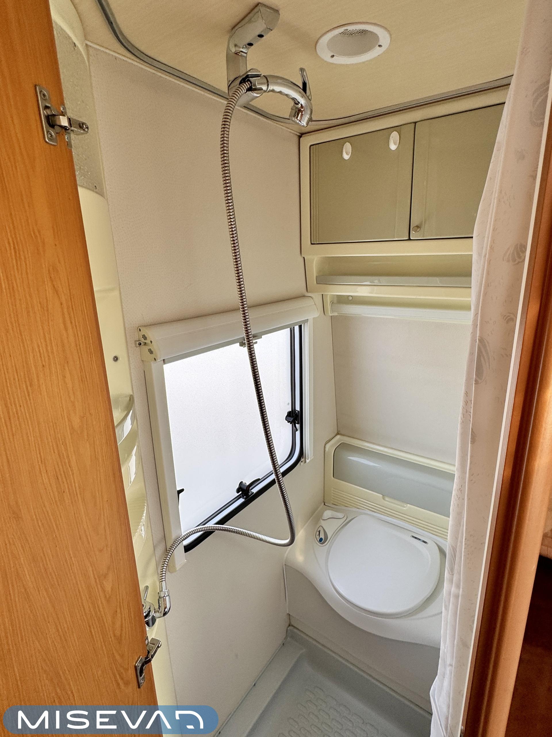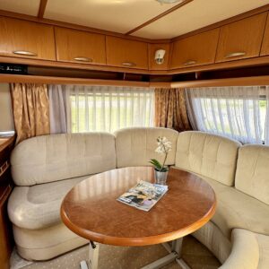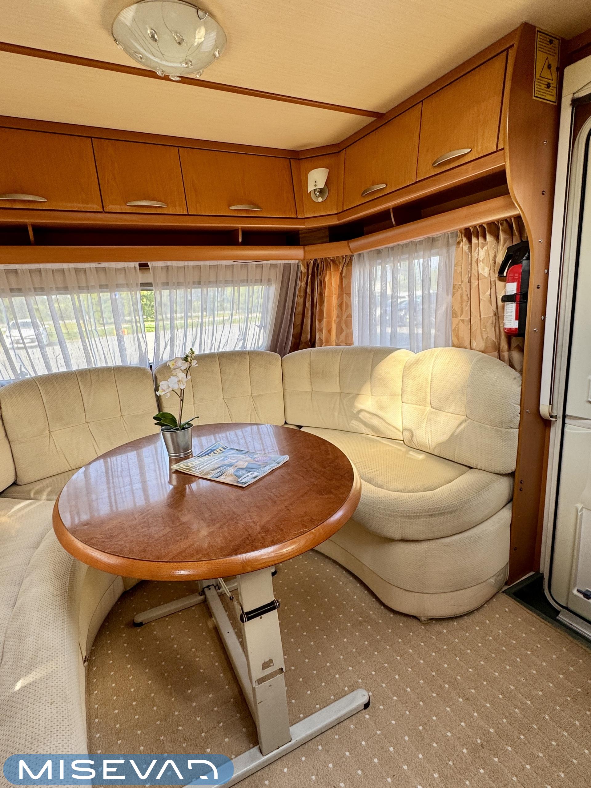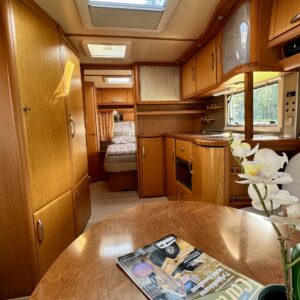 Alde, Elpatron, Kassettgardiner, Dusch, Taklucka, Kylskåp, Gasugn, Två däck, Kassettoalett, Spis, Markis, Radio, liesituuletin, Vätsecirkulationsvärme, Parsäng, Frysfack
