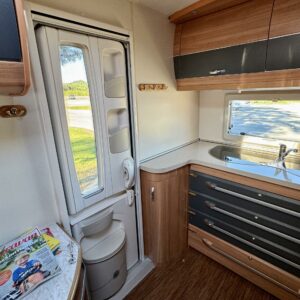 Kassettgardiner, Kassettoalett, Kylskåp, Taklucka, Golvvärme, Spis, Varmvattenberedare, Tvättho, Frysfack, Elpatron, TV-antenni tai lautasantenni, Bakre kök, Trumatic, Stödben