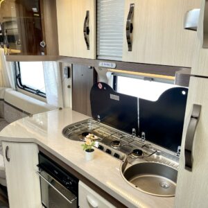 Alde, kwh-mittari, ranskalainen vuode, Kylskåp, Kassettoalett, Kassettgardiner, Taklucka, Golvvärme, Spis, Varmvattenberedare, Vätsecirkulationsvärme, Frysfack, Parsäng, Tvättho, Elpatron, Stödben, Lattialämmitys (sähkö), jenkkijääkaappi, liesituuletin, Asuinosan hyttysovi/verho, Gasugn, sähkön ulosotto, televisioteline, Golvmattor i boendedelen, TV-antenni tai lautasantenni, Markis, Cykelställ