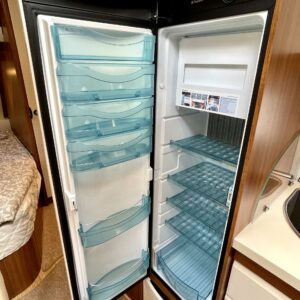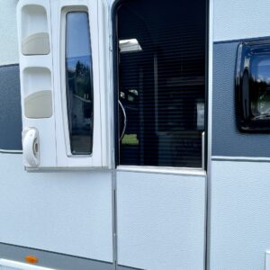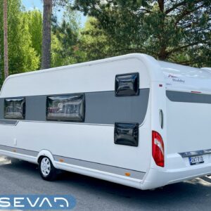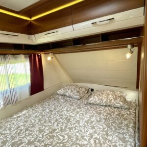 Nahkaverhoilu, Pitkittäinen parivuode, Mover- vaununsiirrin, Markis, Våningssäng, Kylskåp, Solpanel, Alde- nestekiertoinen keskuslämmitys, Alde, Elpatron, Lattialämmitys (sähkö), liesituuletin, Taklucka, Spis, Kassettoalett, Kassettgardiner, Frysfack, Tvättho, Stödben