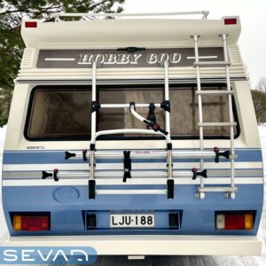 Cykelställ, Radio, Spis, Dusch, Taklucka, Frysfack, Kylskåp, Parsäng, Varmvattenberedare, Bränsledriven extravärmare, Markis, Takstänger/stege, Tvättho, Talvirenkaat(kitka)