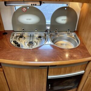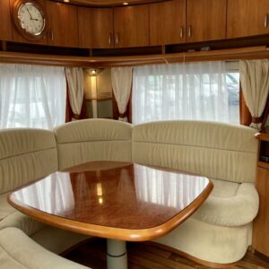 Alde,Jääkaappi,Kaasu-uuni,Kasetti WC,Kasettiverhot,Kattoluukku,Keskuslämmitys,Liesi,Lämminvesiboileri,Nestekiertolämmitys,Parivuode,Pesuallas,Suihku