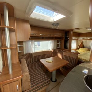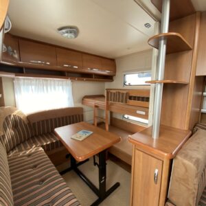 Kylskåp, Kassettoalett, Kassettgardiner, Taklucka, Våningssäng, Golvmattor i boendedelen, Spis, Varmvattenberedare, Markis, Frysfack, Parsäng, Tvättho, Cykelställ, Dusch, Elpatron, Trumatic, Stödben, Lattialämmitys (sähkö), Kesärenkaat, pullonvaihtaja, sähkön ulosotto
