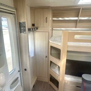 Solpanel, Kylskåp, Kassettoalett, Kassettgardiner, Taklucka, Våningssäng, Spis, Varmvattenberedare, Markis, Frysfack, Parsäng, Tvättho, Cykelställ, Trumatic, Stödben, kaasun ulosotto, Tupla-akut